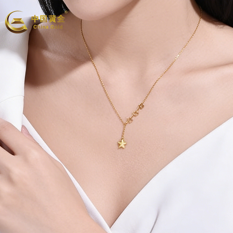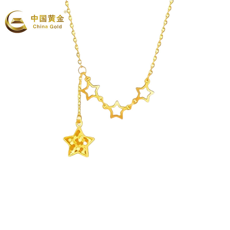 中国黄金星星黄金项链女足金镂空星星流苏项链生日情人节送女友由