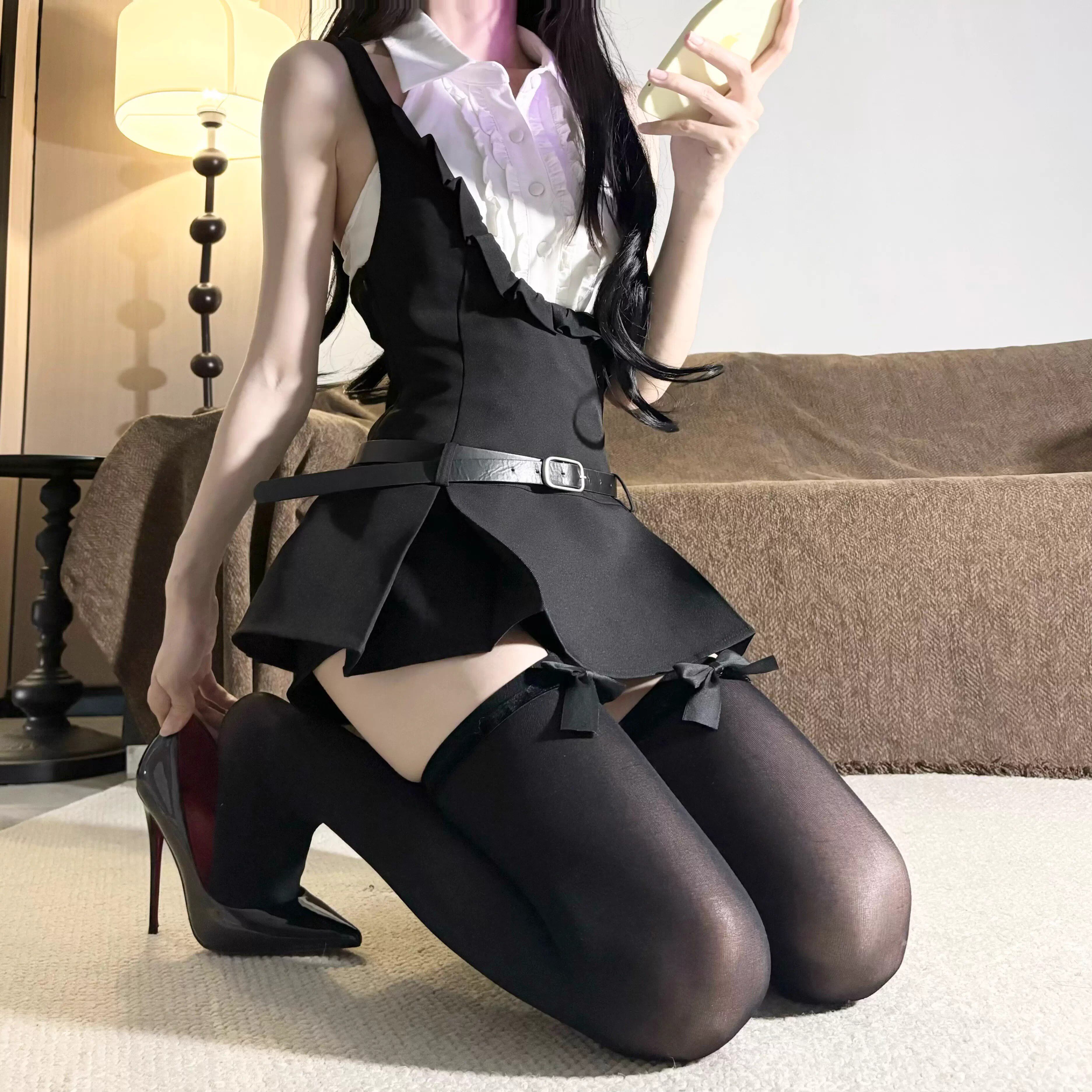 性感纯欲JK吊带袜超薄透气亲肤天鹅绒蝴蝶结长筒黑丝袜女防勾丝由