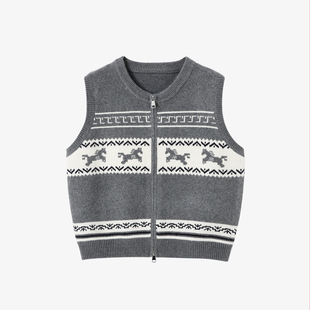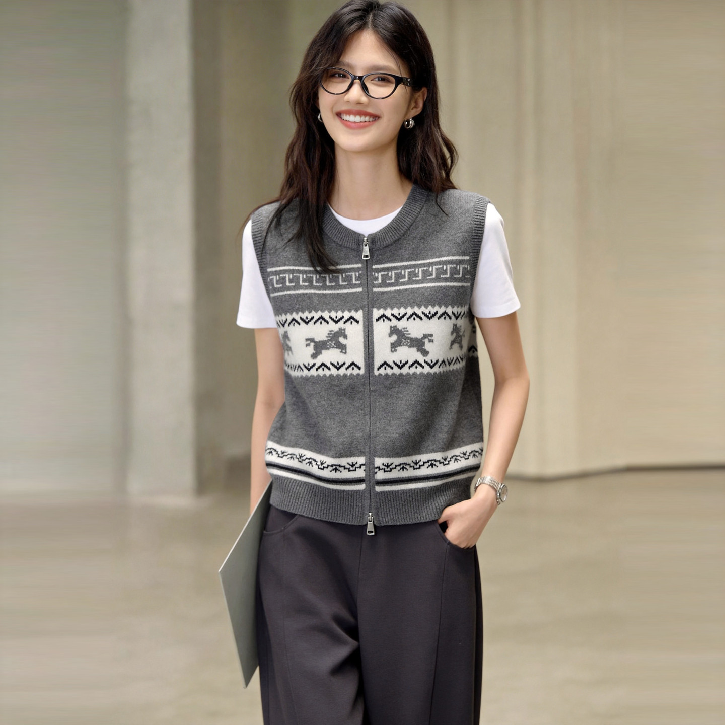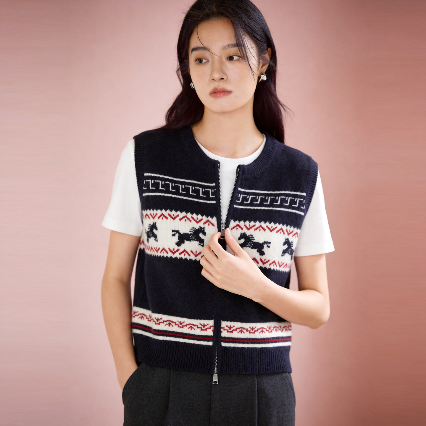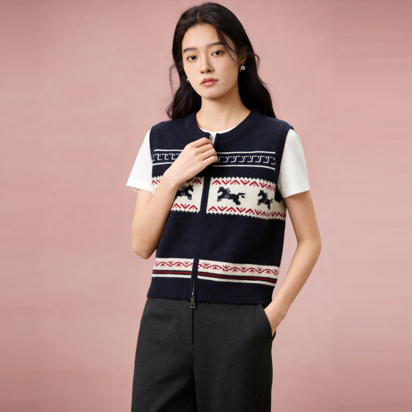 Basic 百家好小马提花拉链针织马甲女2026早春叠穿毛衣背心 House