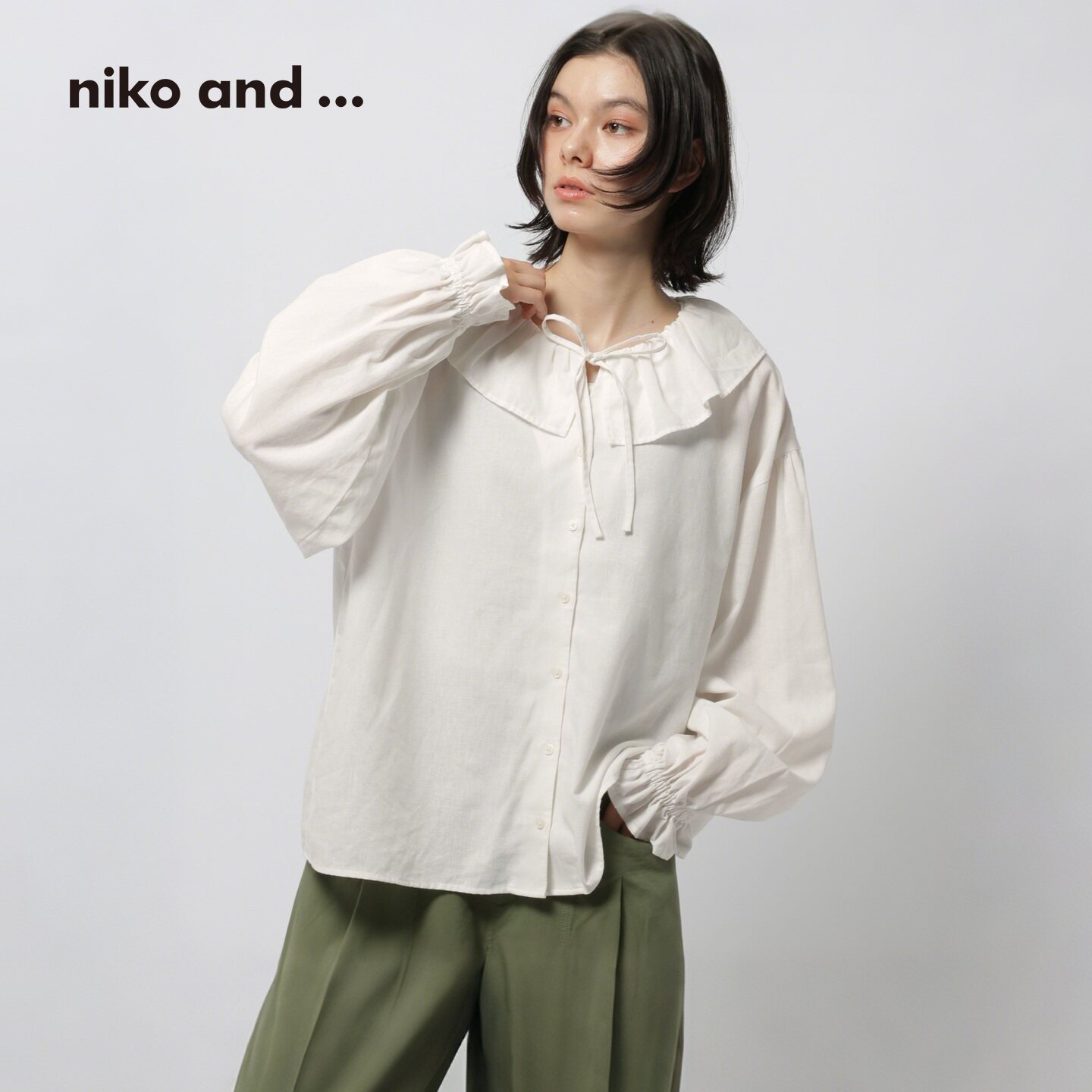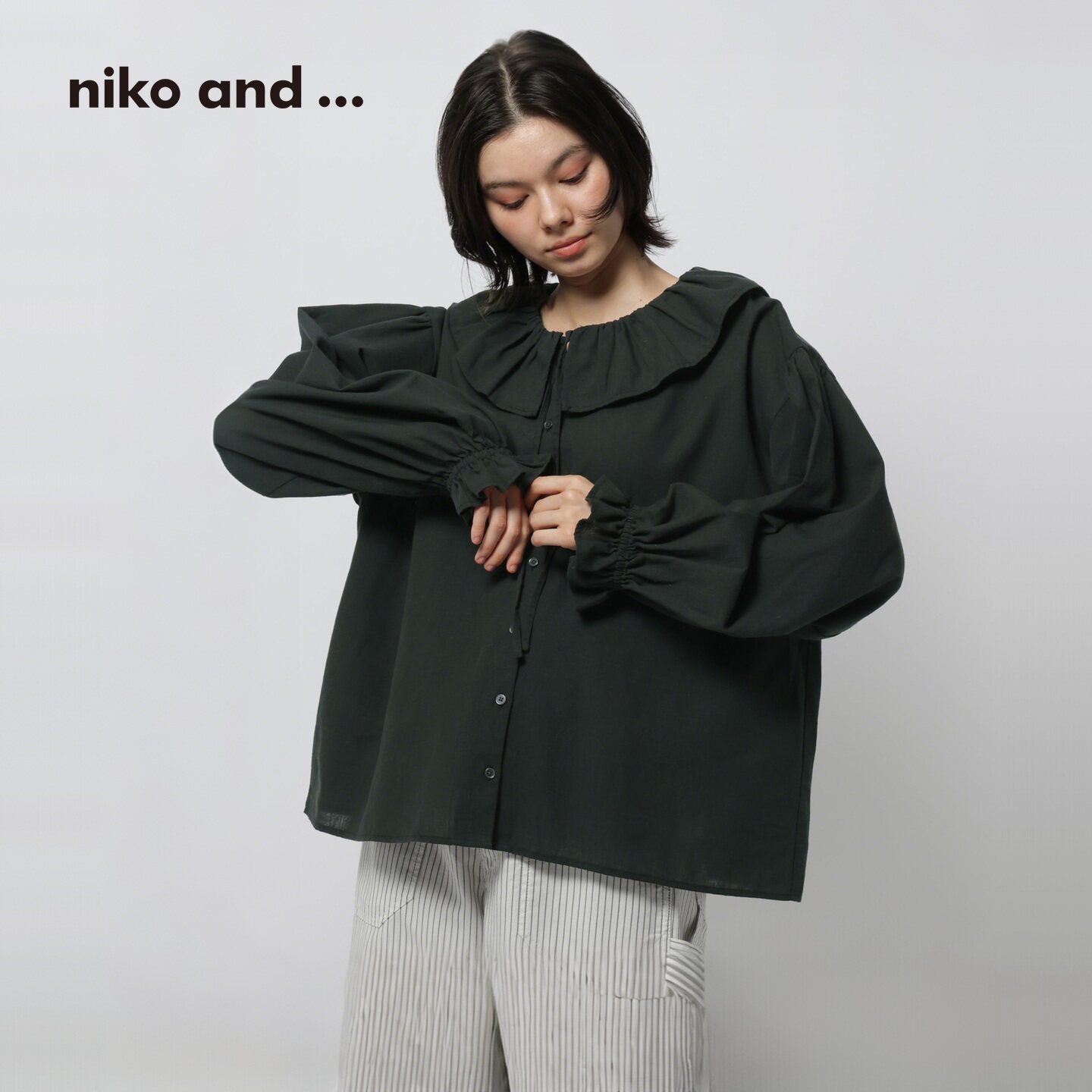 格纹花边木耳领长袖 niko 上衣621940 新款 女2026夏季 and ...衬衫由
