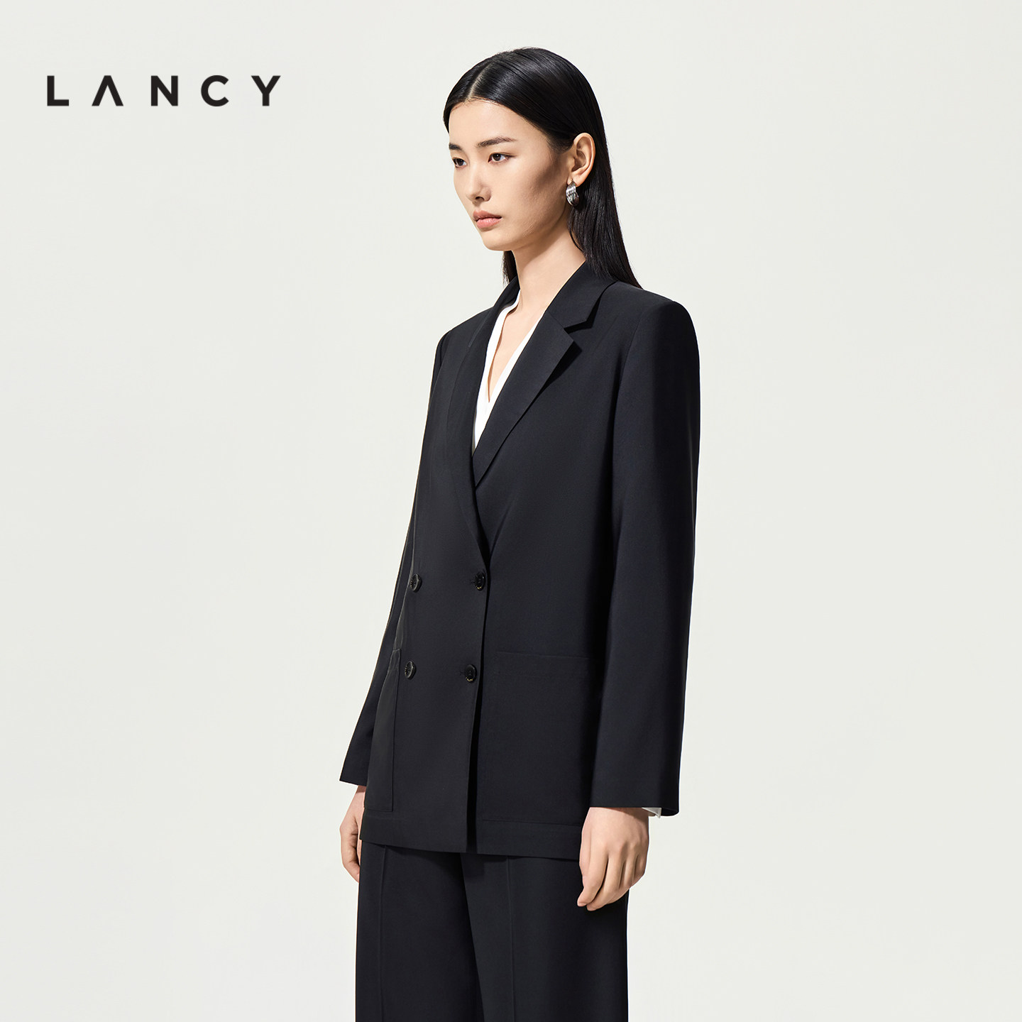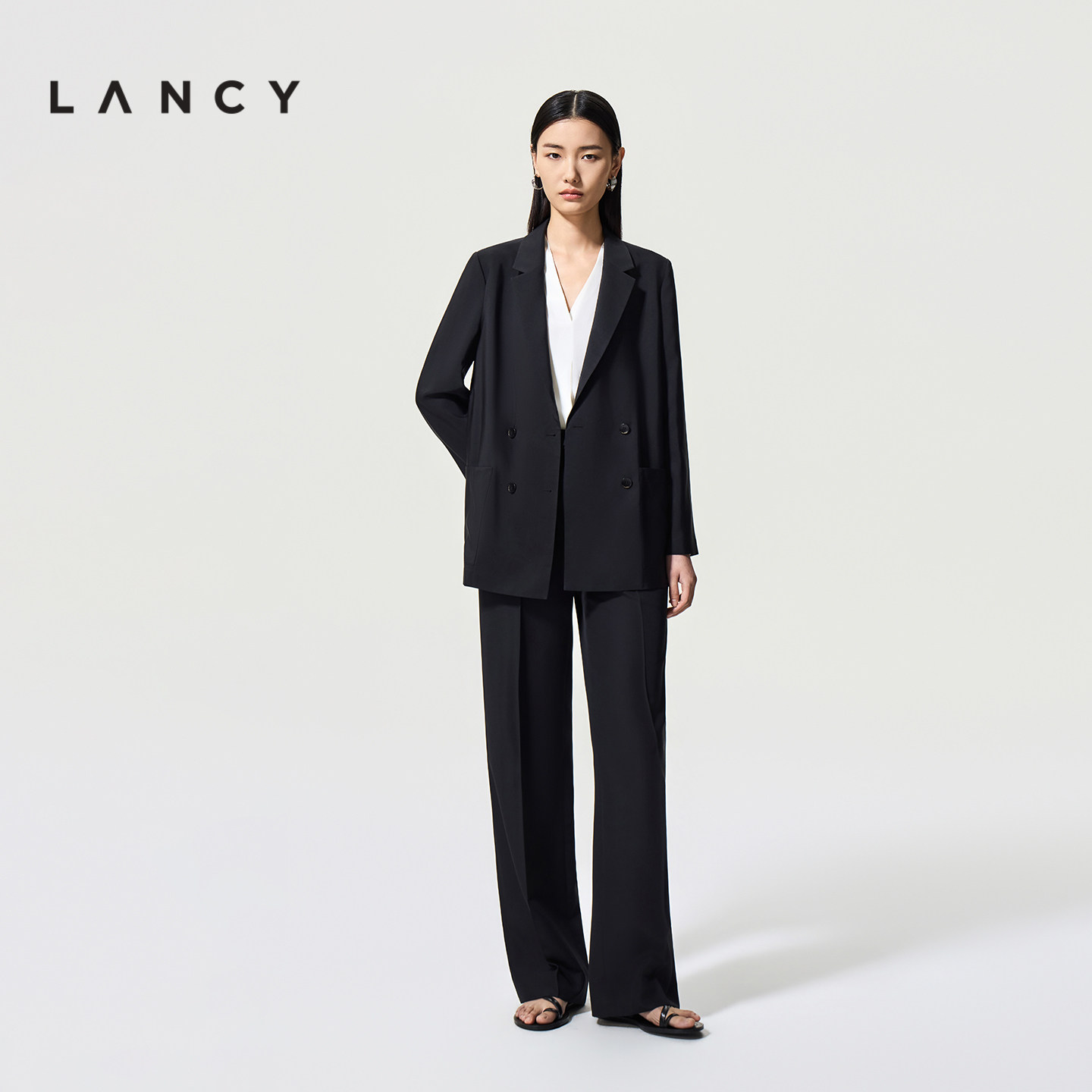 高级感通勤挺阔黑西装 外套女 新款 朗姿2026夏季 蚕丝羊毛 LANCY由