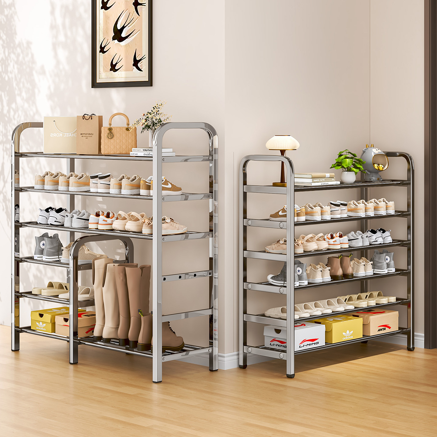 柜出租屋宿舍省空间鞋 子收纳架 架多层家用门口简易窄小鞋 不锈钢鞋由