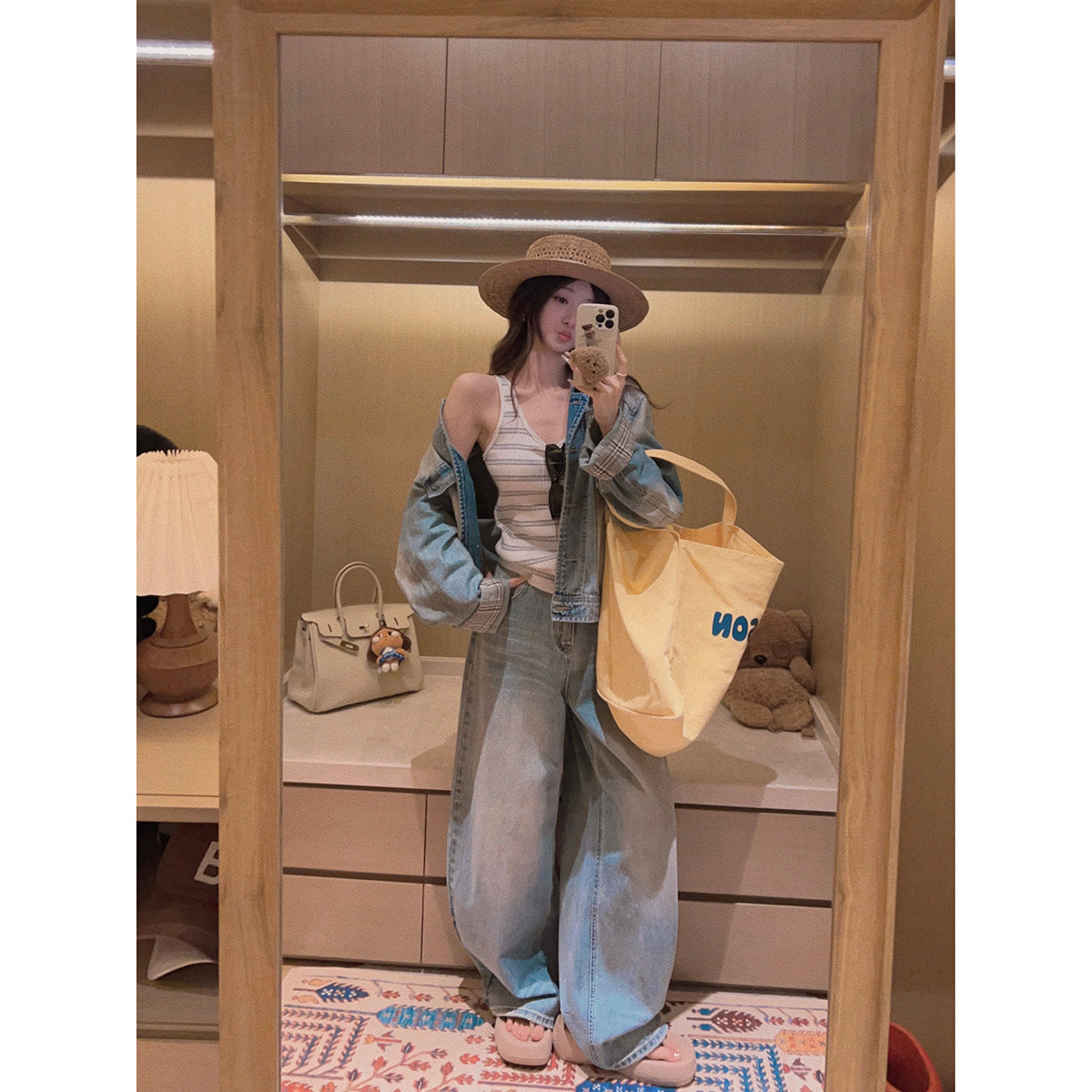 套装 Yukiss 牛仔裤 休闲牛仔夹克外套 时髦美式 感
