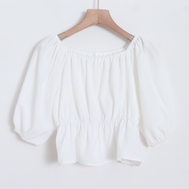 衬衫 松紧一字领套头宽松显瘦女甜美短款 D19072日单26年春夏新款
