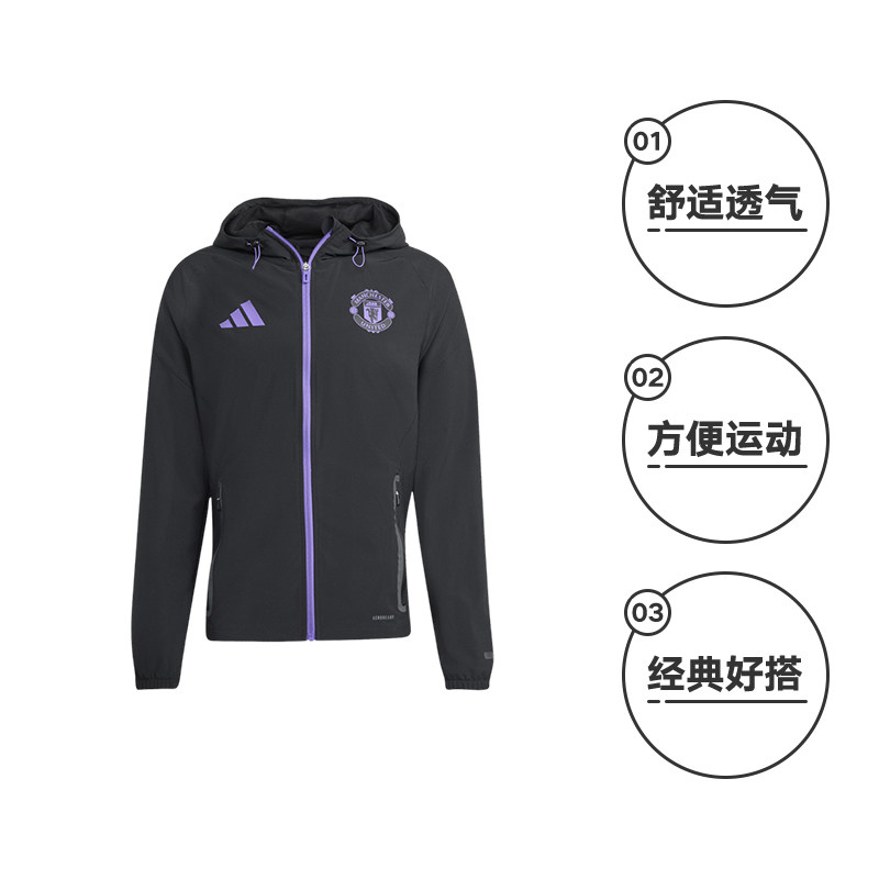 adidas阿迪达斯曼联足球训练外套男梭织连帽夹克JV5351 自营由