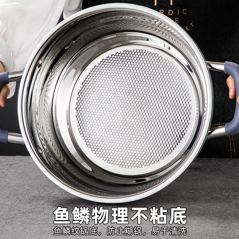 特厚五层钢蒸煮锅食品级304不锈钢蒸锅家用加厚两双层二层汤蒸锅由
