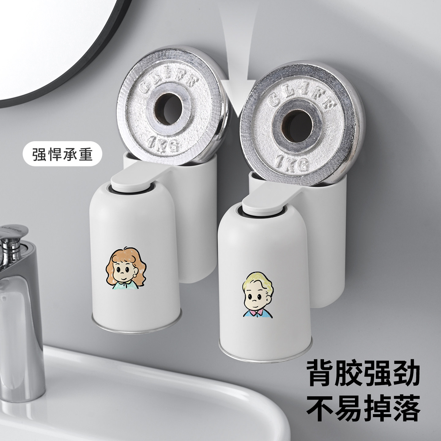 牙刷置物架304不锈钢漱口杯壁挂牙刷架刷牙杯一家三口四口 磁吸式