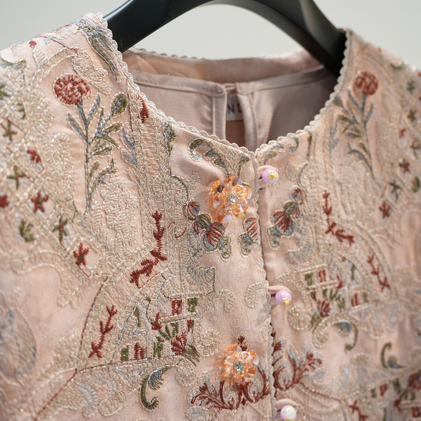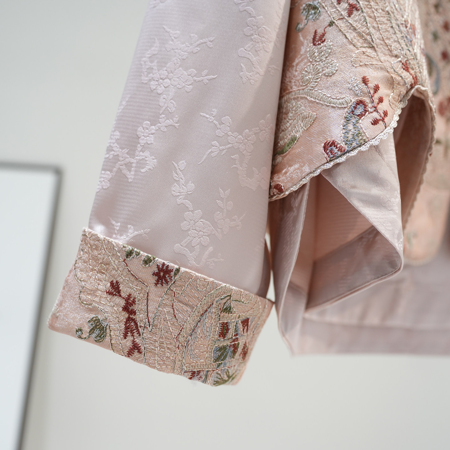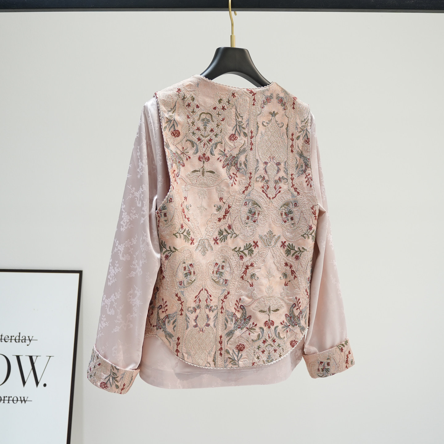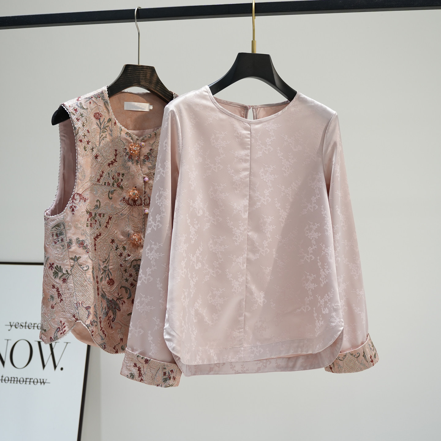 为您提供商品国风马甲提花暗纹卷边袖 新中式 刺绣两件套女2026春季 新品 上衣套装的详细介绍,