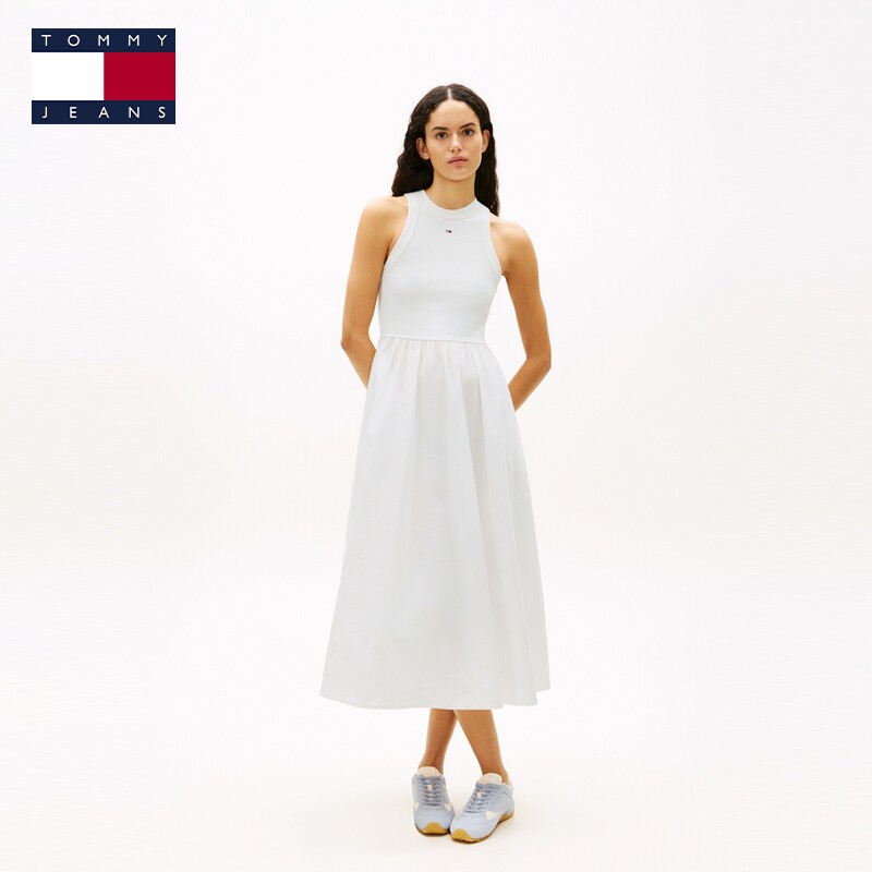 Tommy26春夏新款 府绸拼接气质优雅修身 显瘦无袖 背心连衣裙 女装