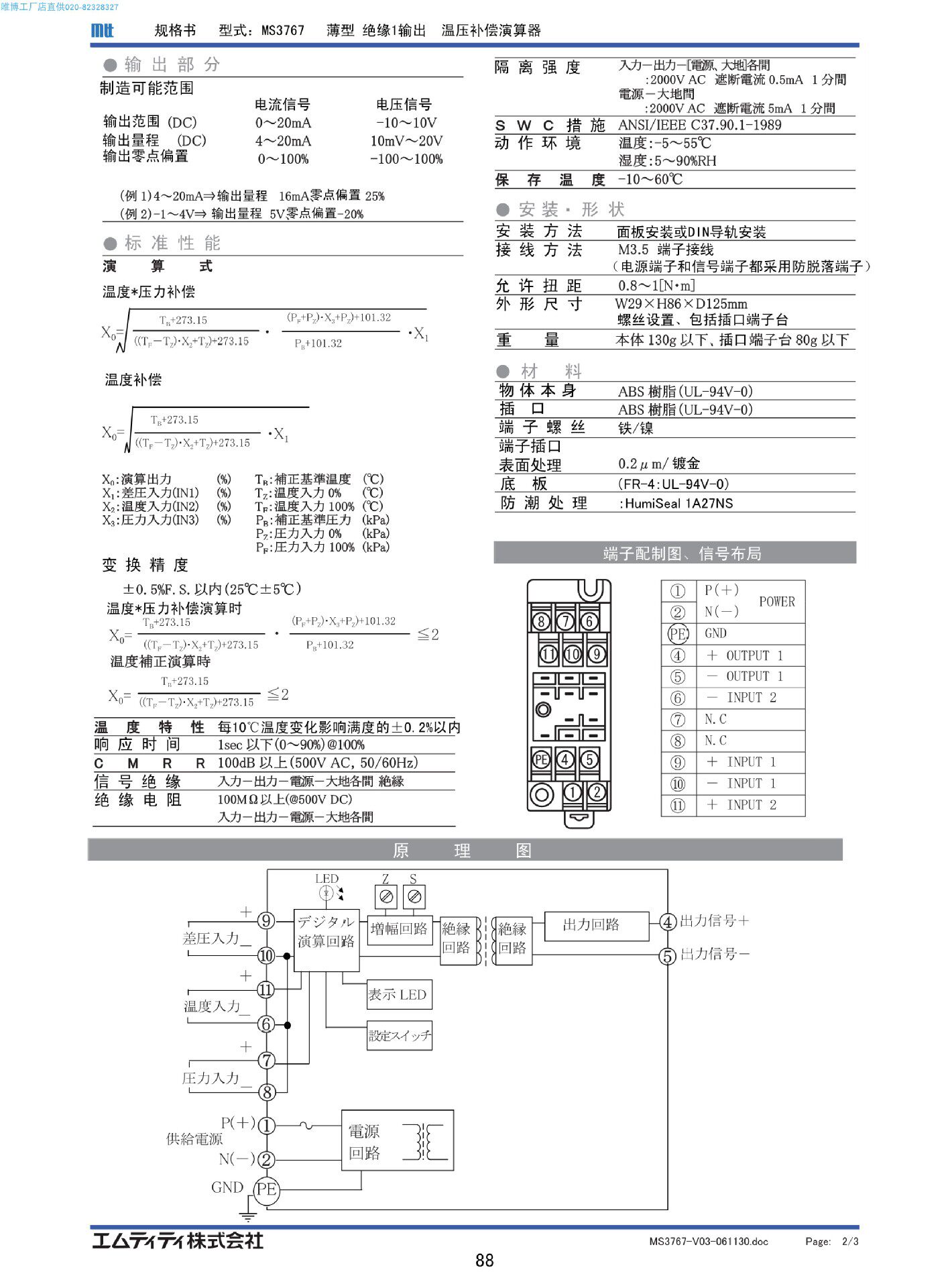 为您提供商品质量保证 MS3767 规格单价另议 原厂 温压补偿演算器的详细介绍,