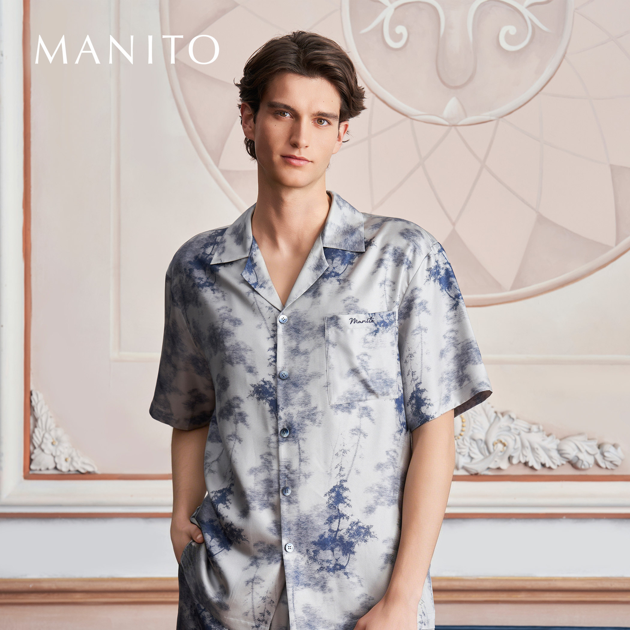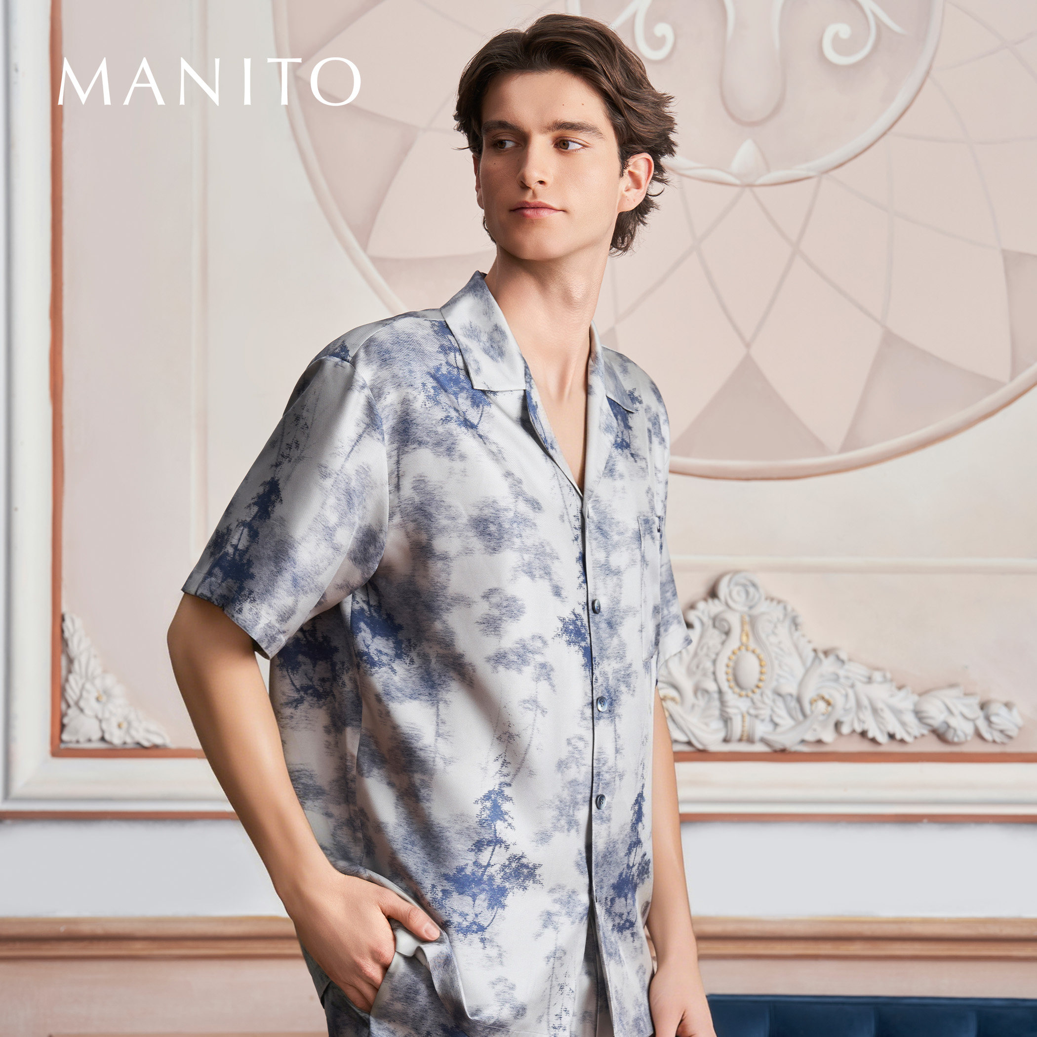 桑蚕丝短袖 MANITO 曼尼陀New Tropical树影男士 睡衣套装由