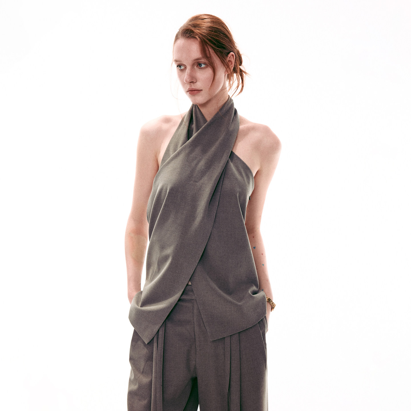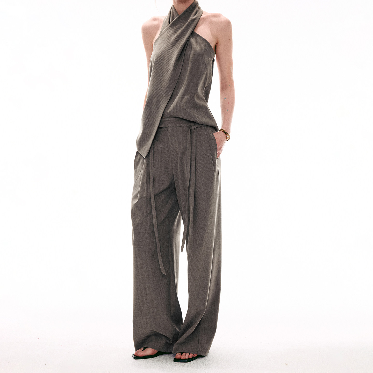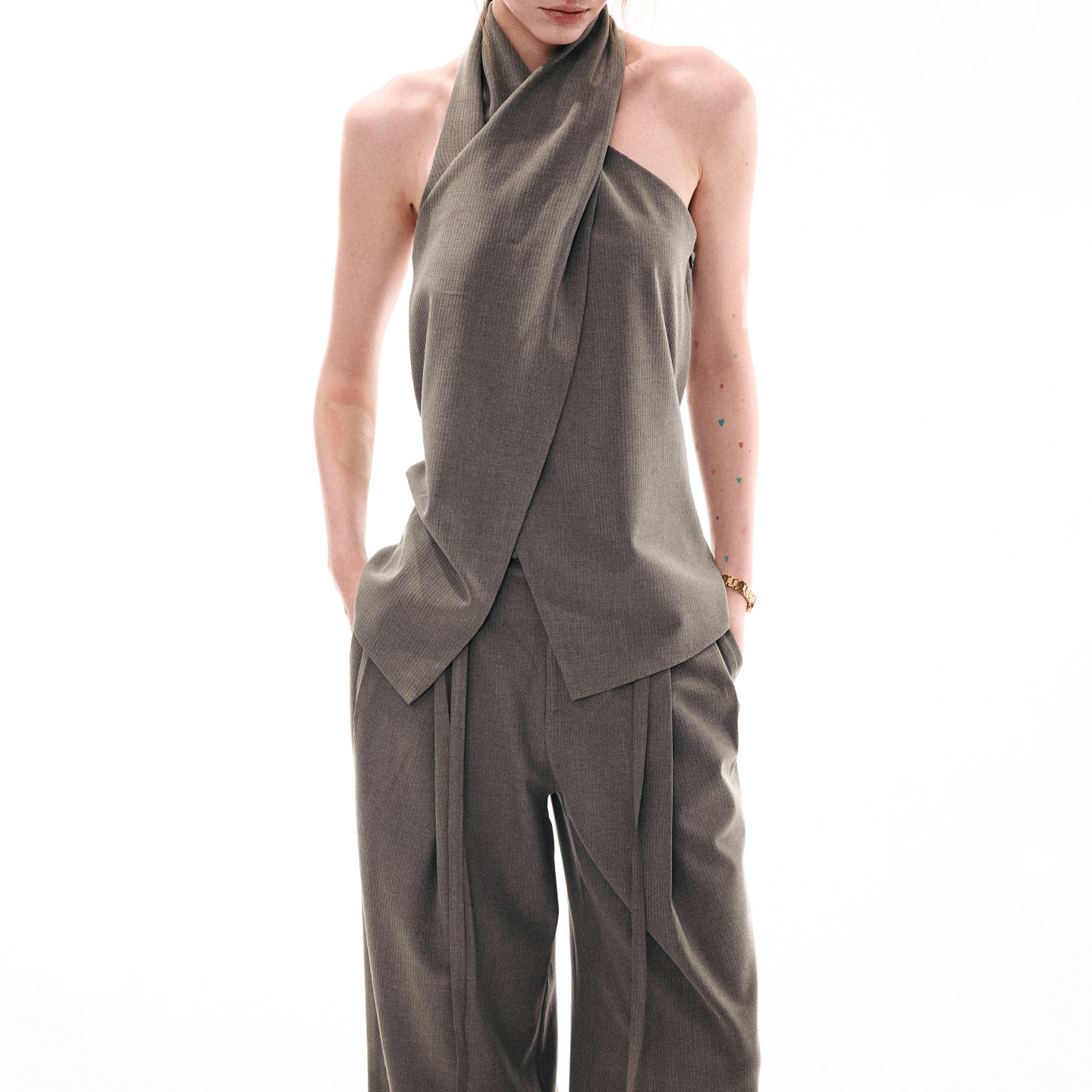 套装 SINGLE 上衣直筒休闲西裤 复古交叉领挂脖无袖 MOMENT 26SS法式由