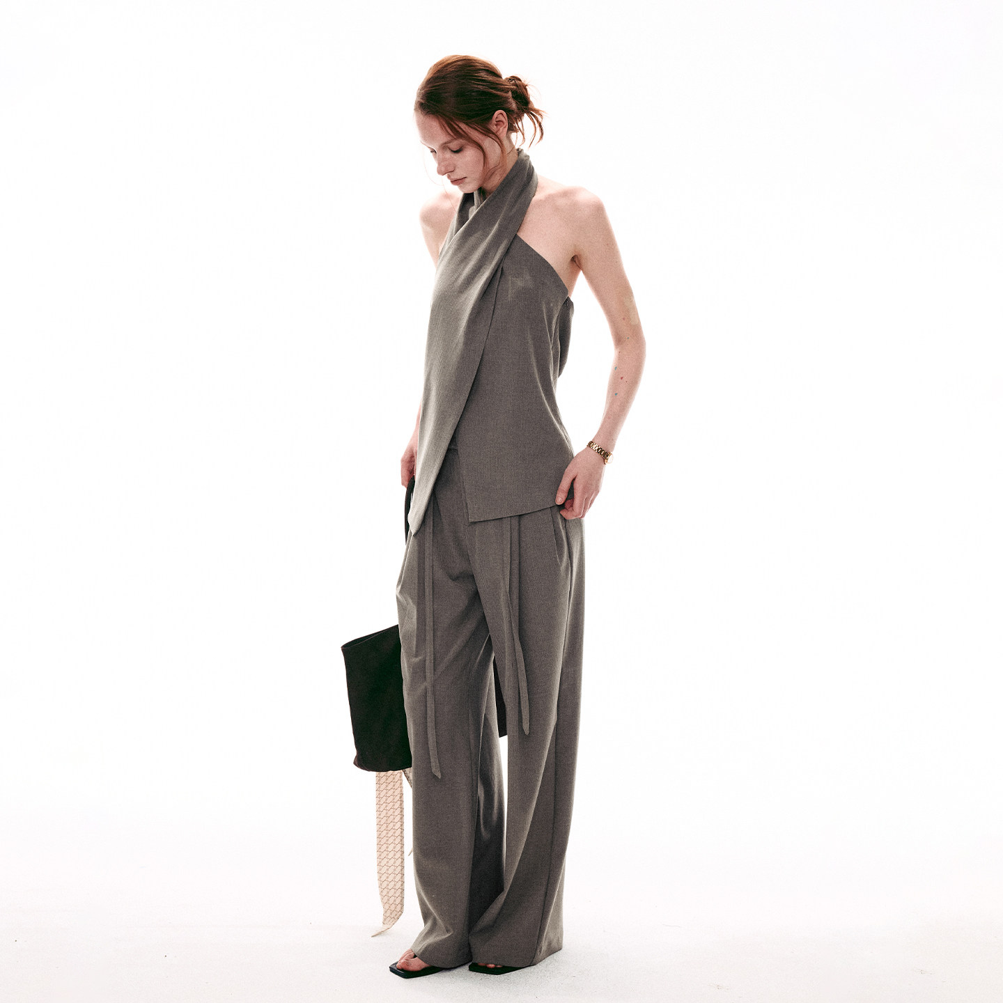 套装 SINGLE 上衣直筒休闲西裤 复古交叉领挂脖无袖 MOMENT 26SS法式