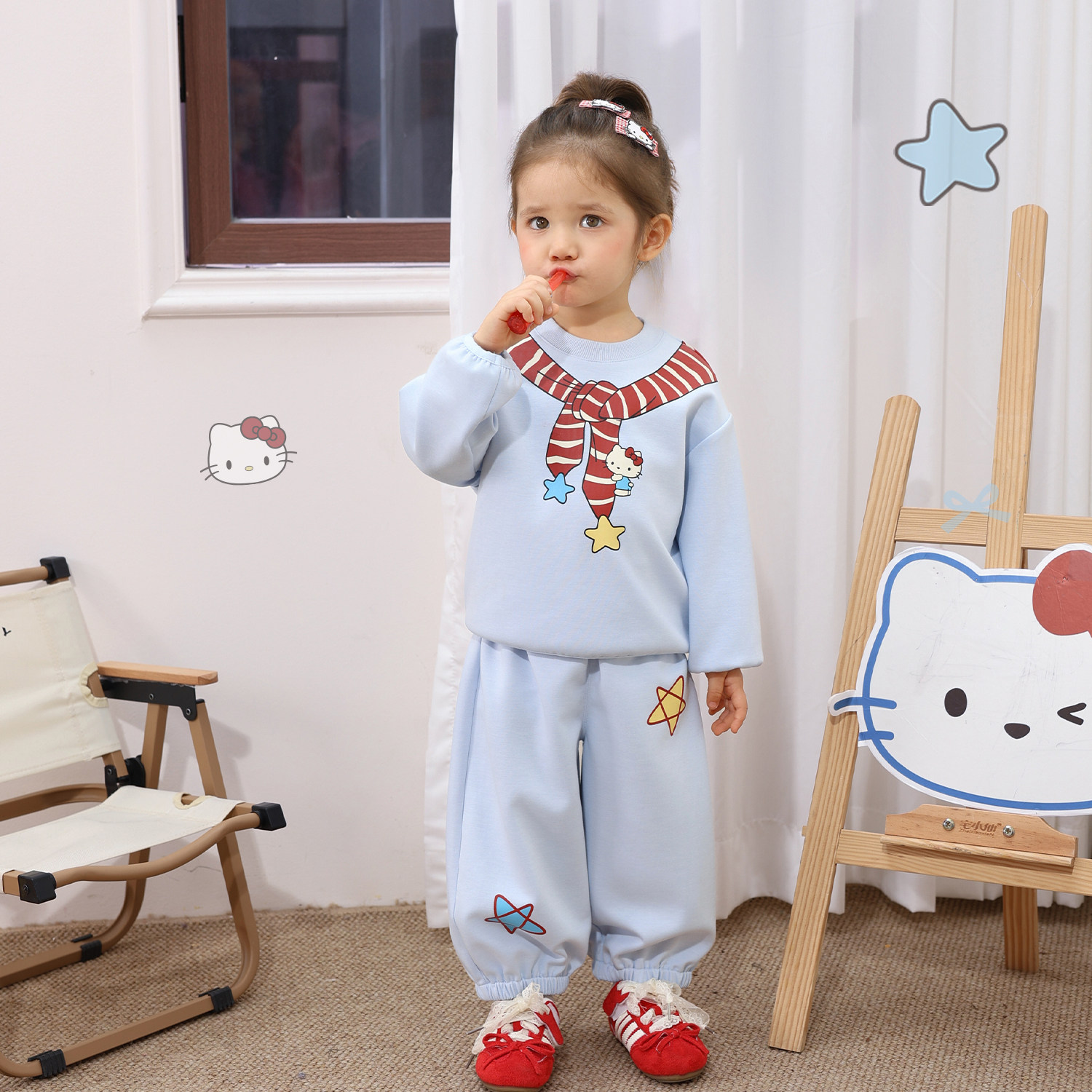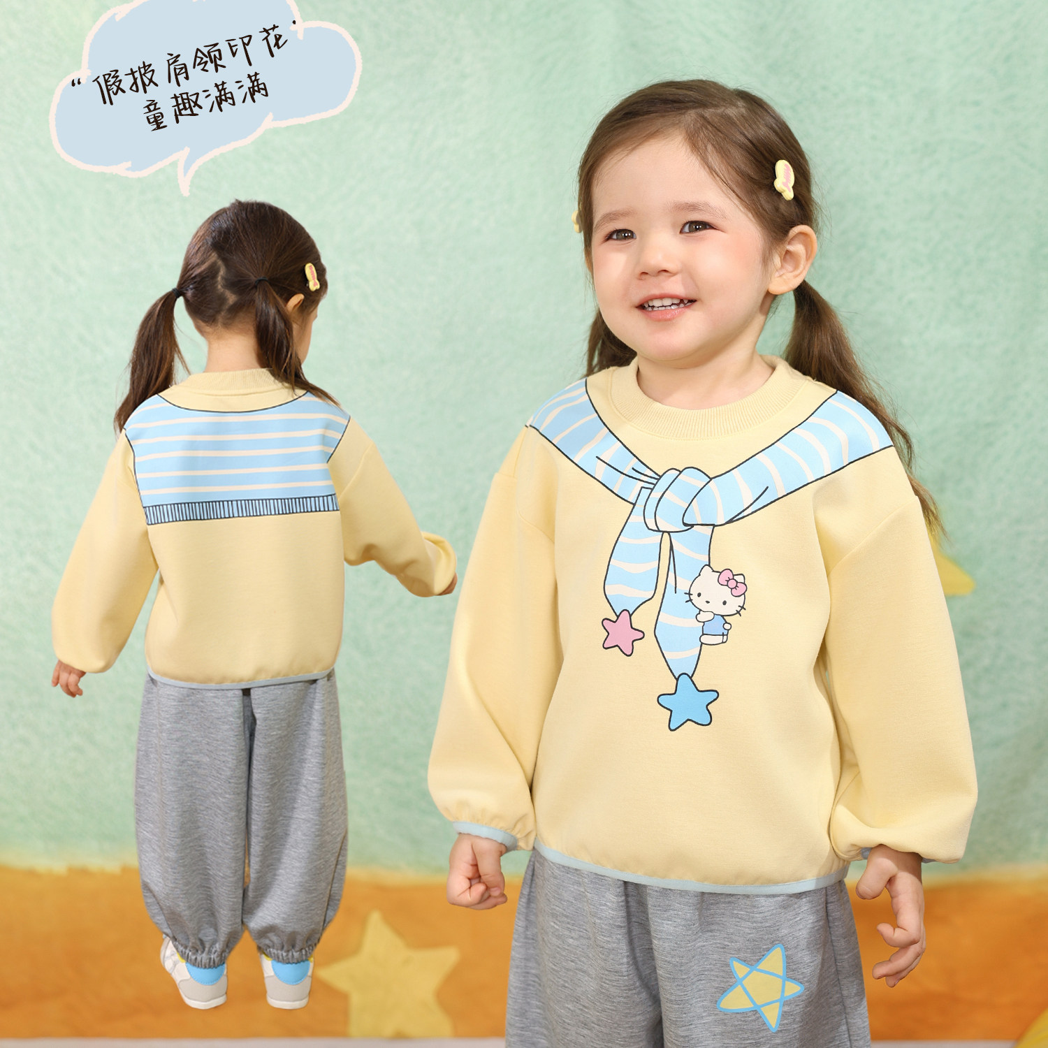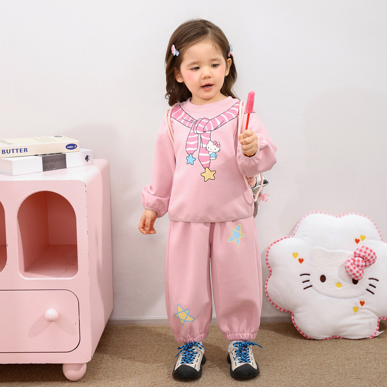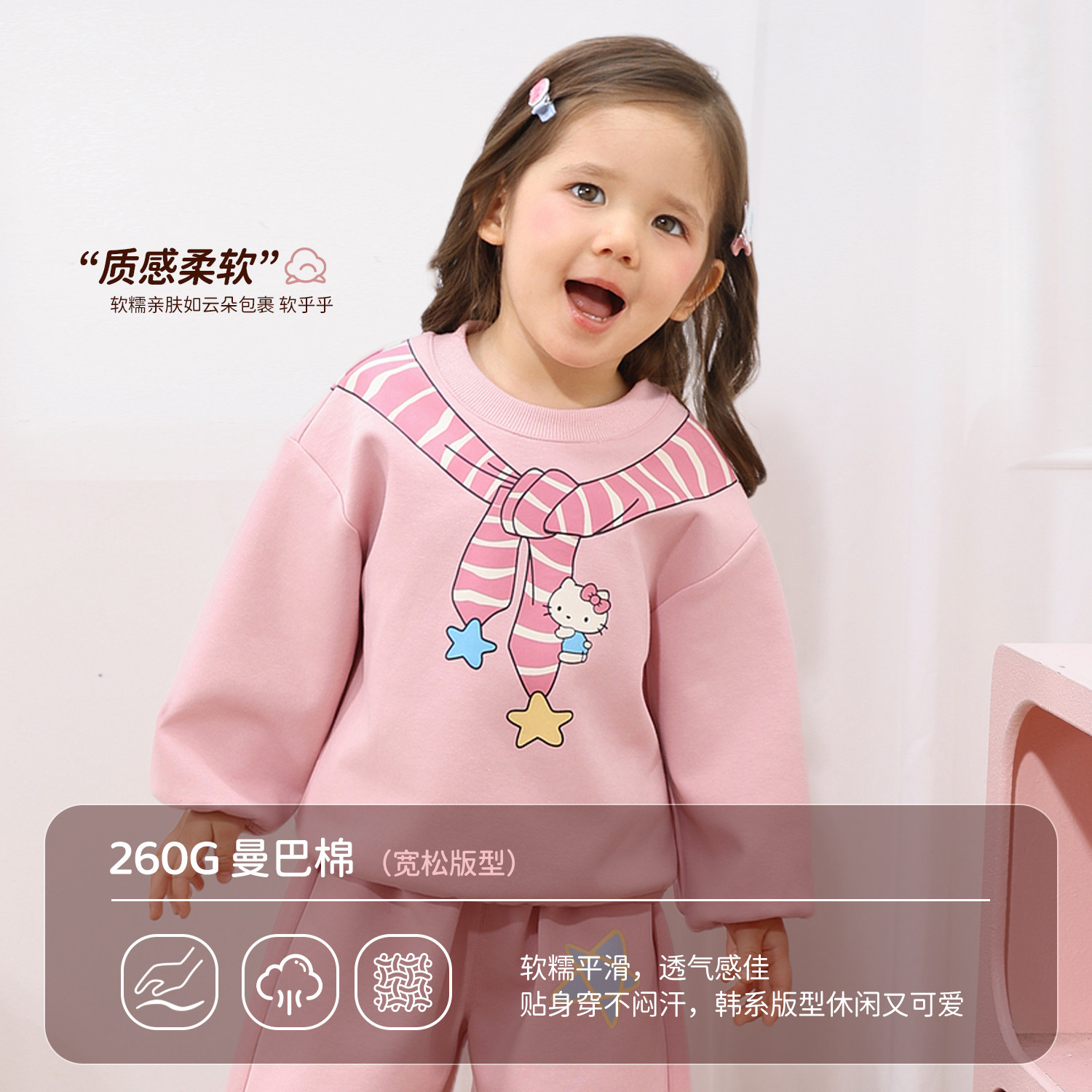 小O爸女婴童 洋气2026春季 新款 婴儿圆领卫衣卡通两件套 女宝宝套装由