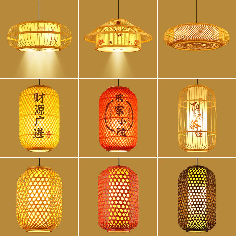 竹编灯笼餐厅茶楼火锅店民宿印字户外防水吊灯中国风竹灯罩 新中式由