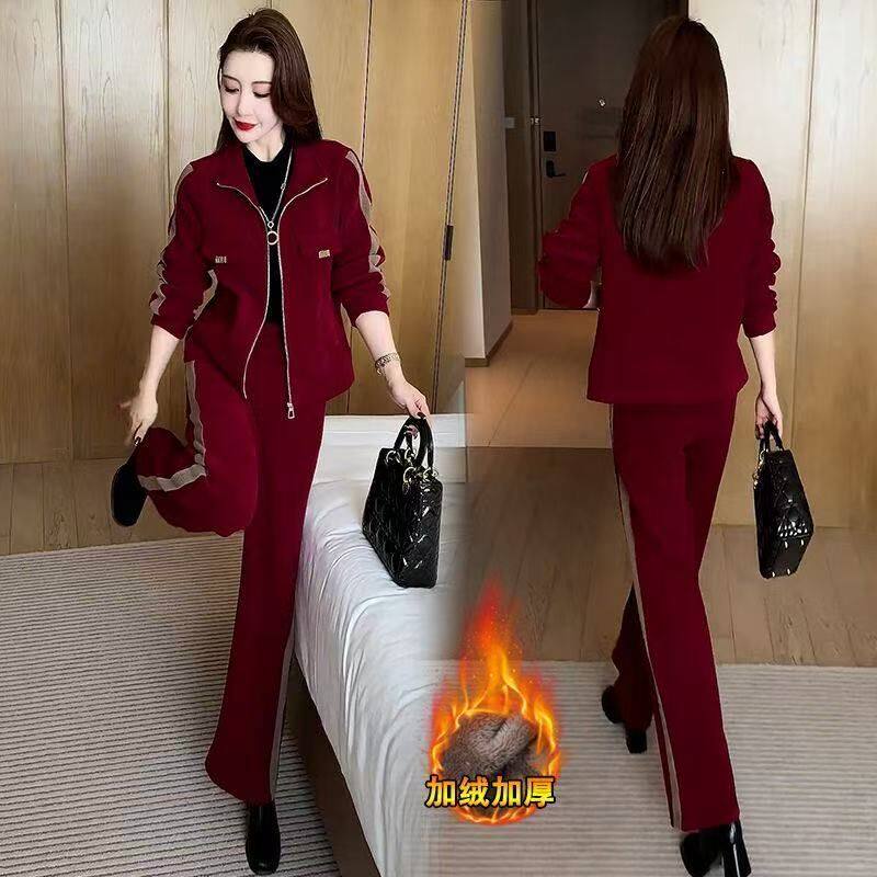 为您提供商品加绒加厚时尚 女2026秋冬新款 洋气减龄显瘦阔腿裤 两件套潮 休闲套装的详细介绍,