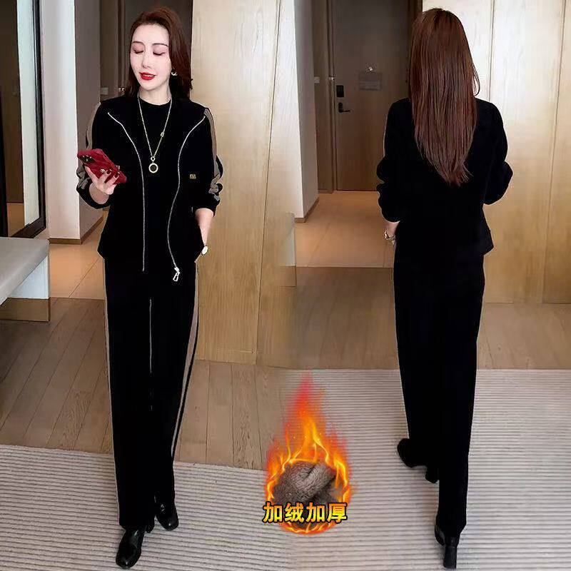 加绒加厚时尚 女2026秋冬新款 洋气减龄显瘦阔腿裤 两件套潮 休闲套装