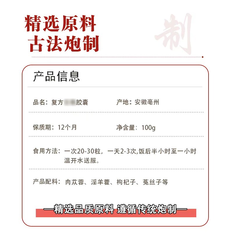 为您提供商品方复i方肉i蓉浓缩胶囊肉苁蓉淫羊藿枸杞子菟丝子中药材品质保证的详细介绍,