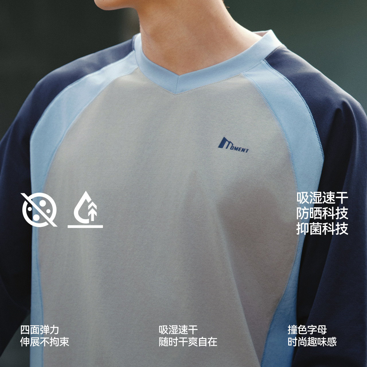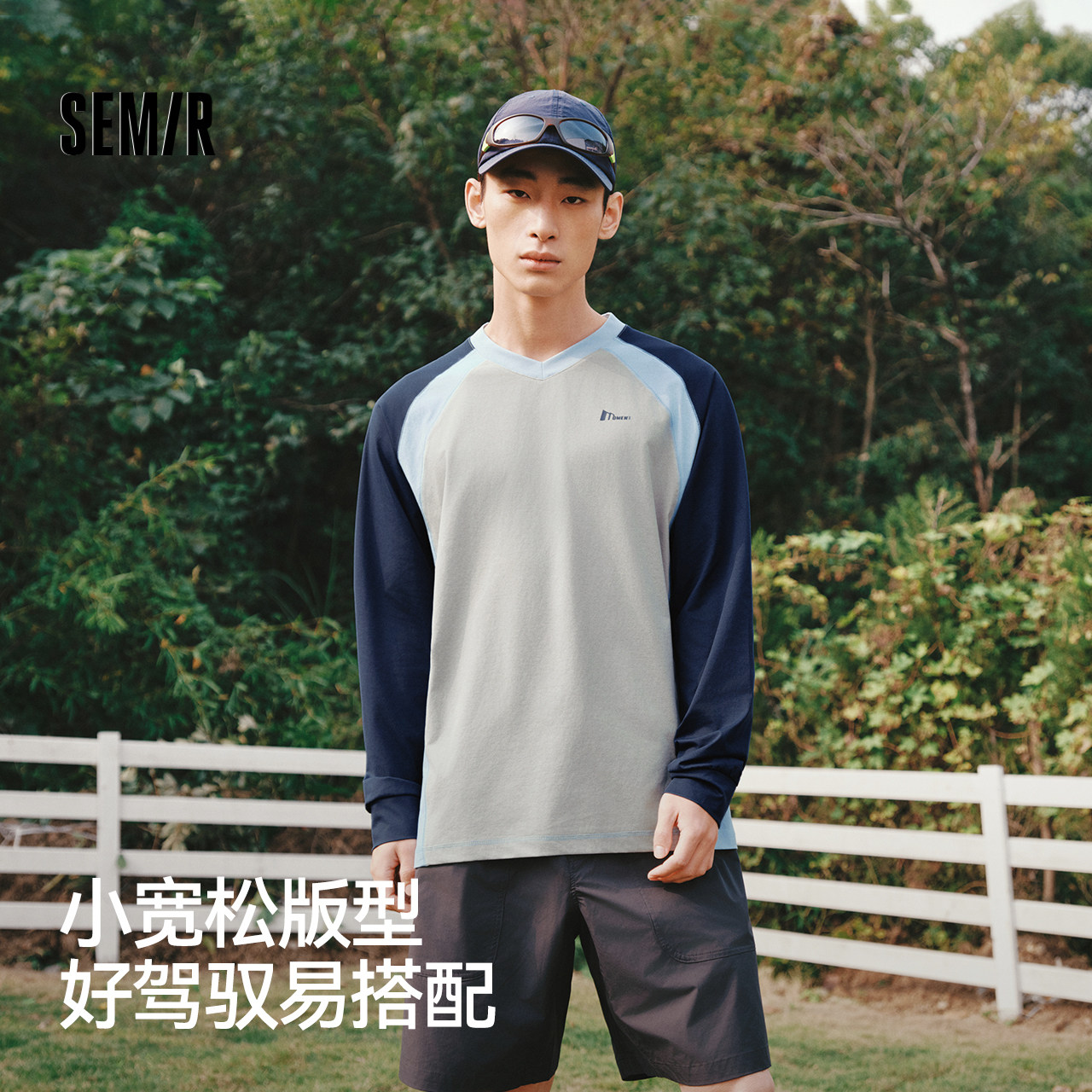 为您提供商品森马长袖 撞色拼接速干上衣2026新款 小宽松V领字母情侣装 T恤男春季的详细介绍,