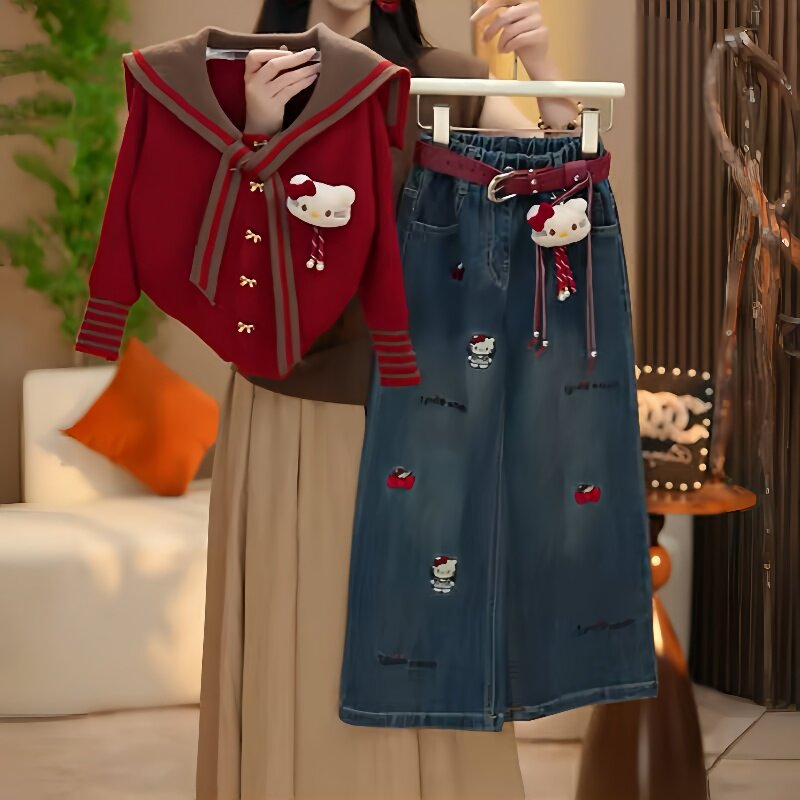 为您提供商品女童针织开衫 春秋2025新款 儿童女孩KT猫牛仔裤 加绒两件套洋气 套装的详细介绍,