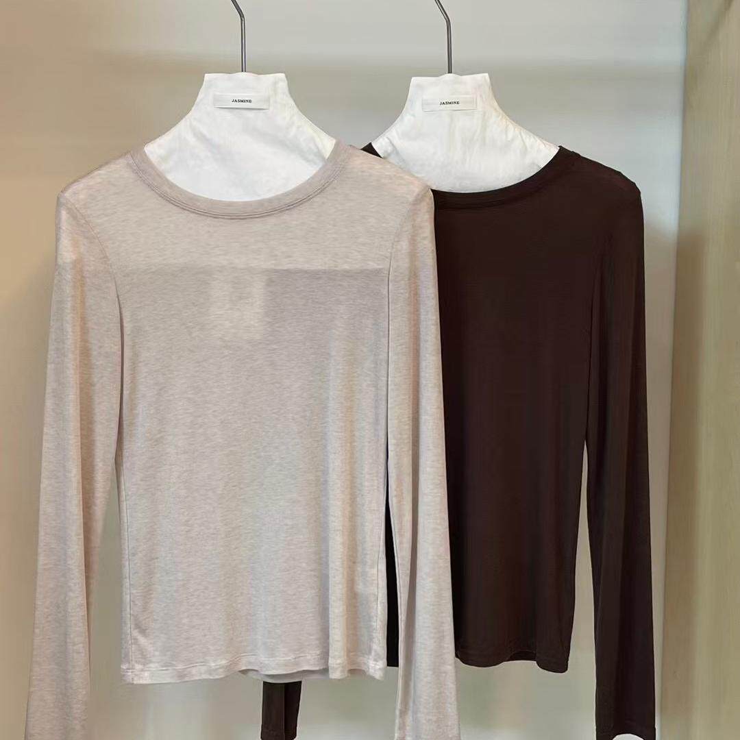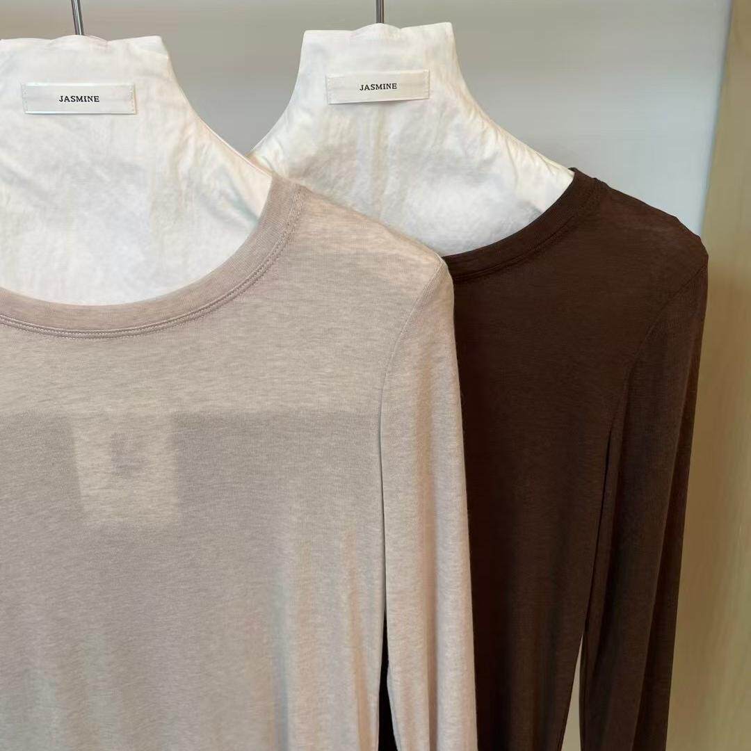 气质纯色显瘦百搭天丝羊毛T恤长袖 上衣女2321 新款 JASMINE2025春季