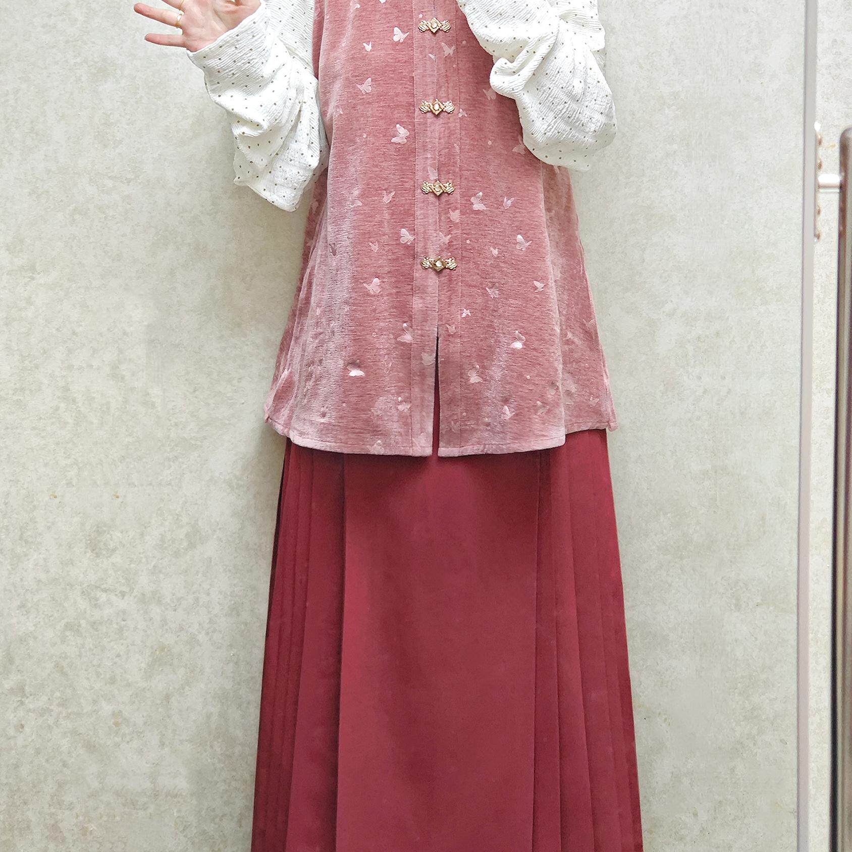 裳裳者华 秋冬提花明制比甲日常汉服立领圆领弓袋袖 短衫 日常 粉黑