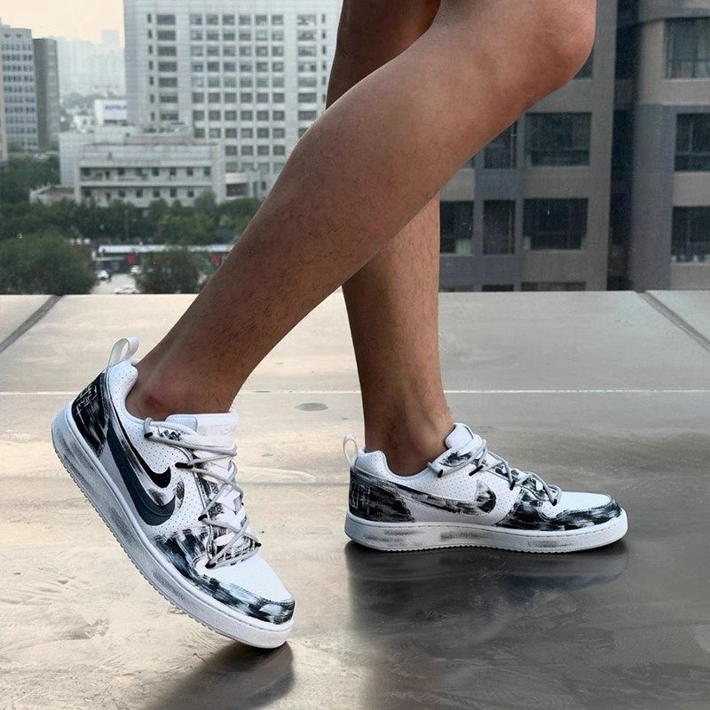Borough 定制球鞋 Nike Court 男 Low暗影双钩涂鸦复古做旧低帮板鞋由