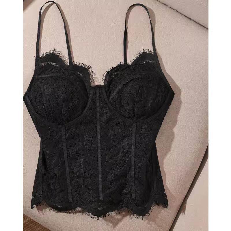 设计感性感鱼骨带胸垫内搭外穿打底上衣 蕾丝吊带背心女网红爆款由