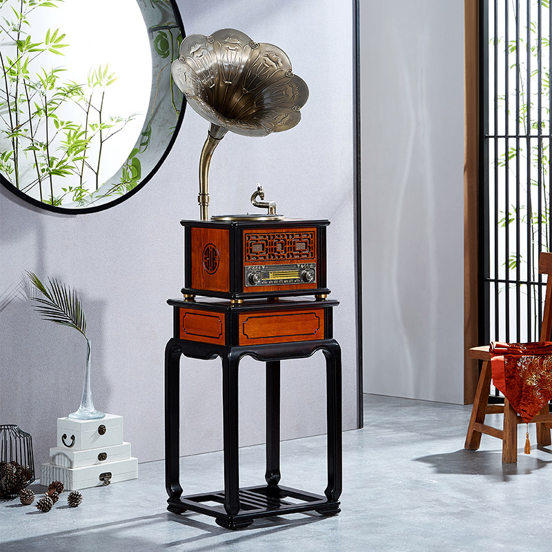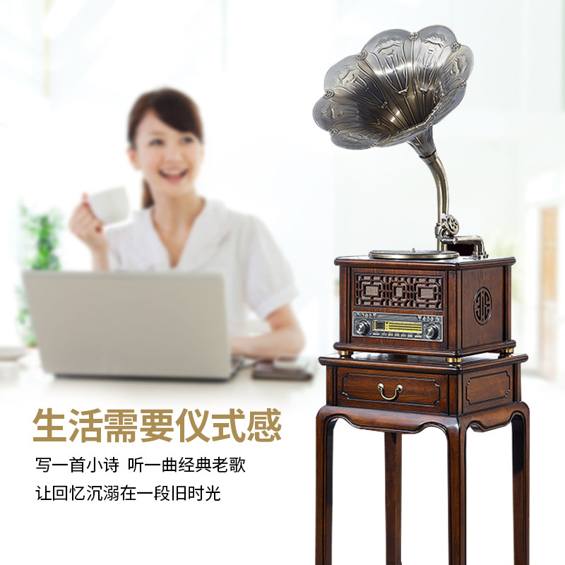 黑胶LP留声机片机中美式 客厅电唱机仿古大喇叭音响 台式 复古老式