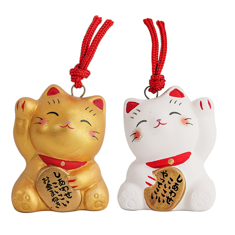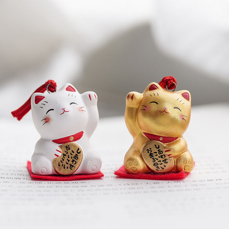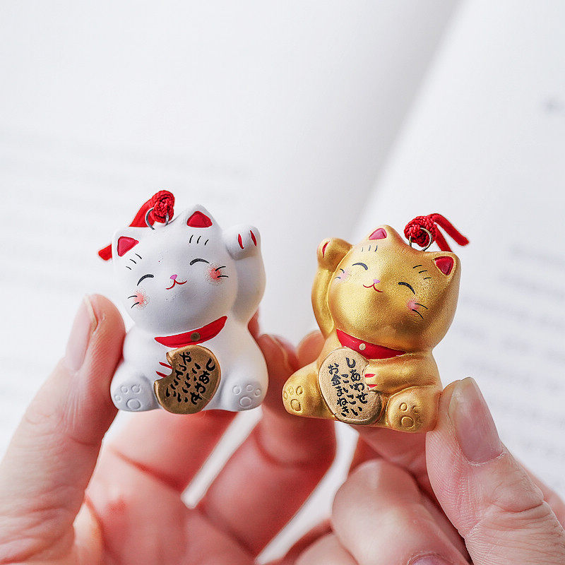 日本进口药师窑招财猫开运土铃摆件家居吉祥物车载挂件生日送礼物
