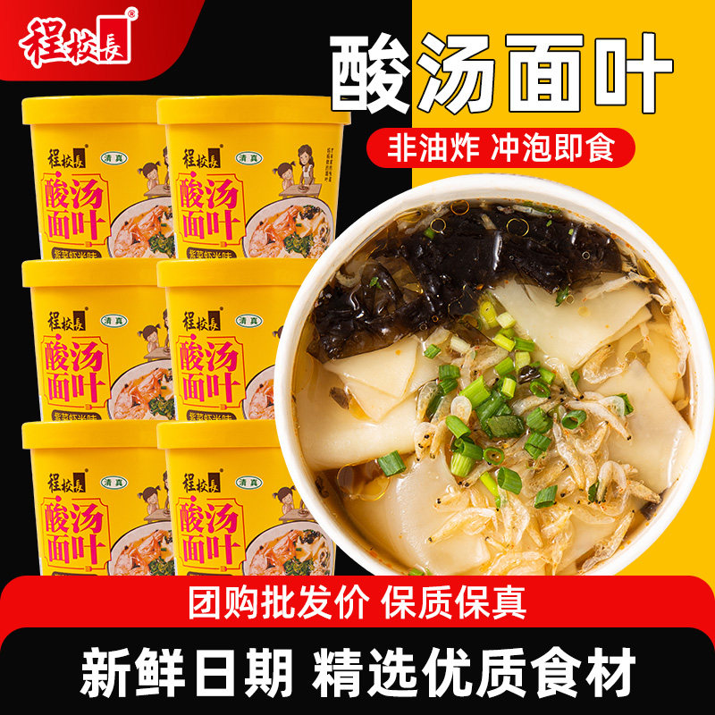 清真速食非油炸紫菜虾米味面片冲泡免煮代餐 程校长酸汤面叶桶装由