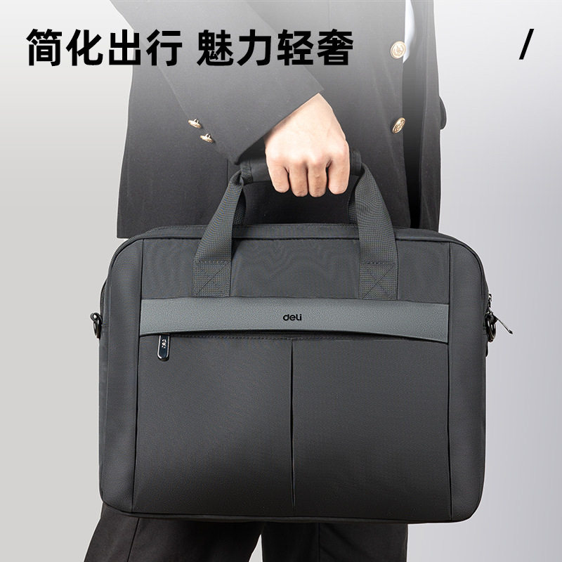 得力BG139电脑包公文包轻商务双主袋大容量文件包分区收纳手提袋由
