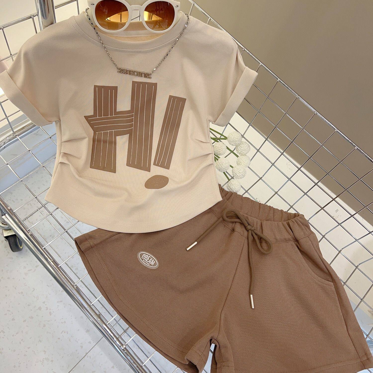 韩版 女童夏季 两件套潮 时髦儿童休闲百搭短裤 2026新款 洋气短袖 套装