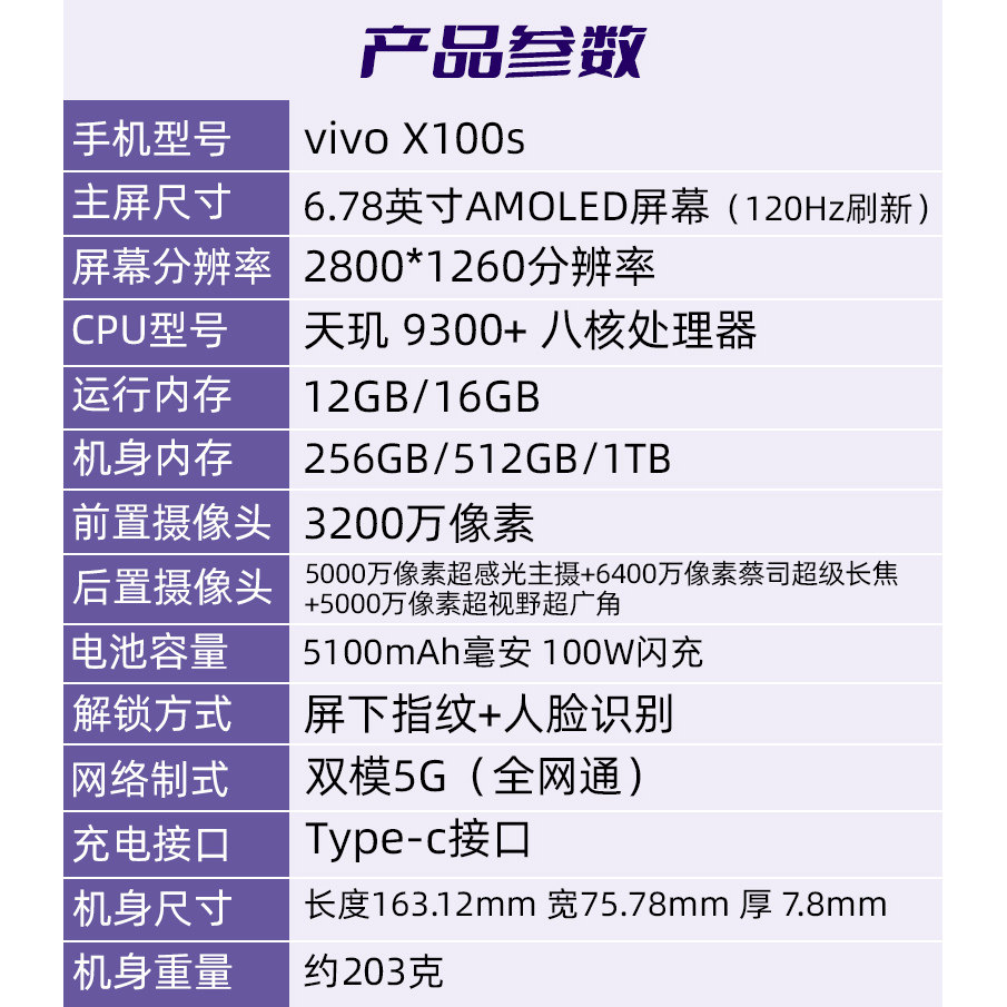 为您提供商品蓝晶X天玑9300 旗舰芯片5G蔡司拍照智能手机x100S X100s vivo的详细介绍,