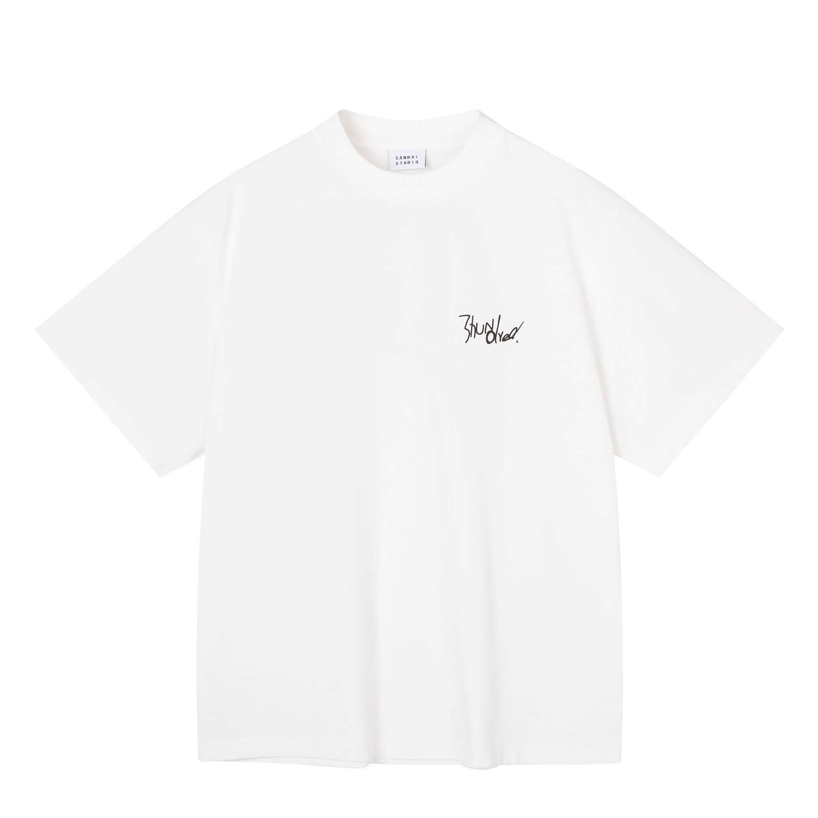 白色手绘纯棉短袖 SANBAI 叁佰 随性 圆领宽松休闲潮流T恤 男夏季