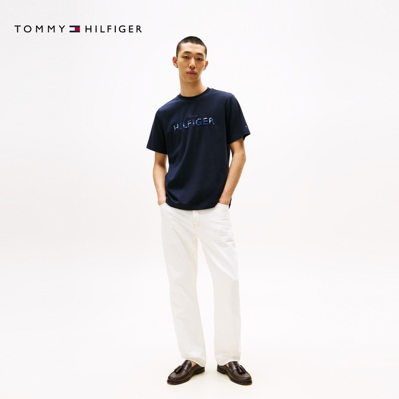 Tommy春夏男装 上衣T恤 平纹双面布休闲通勤图案填充字母印花短袖