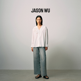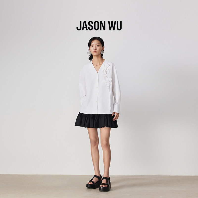 衬衫 女 鸢尾花V领百搭上衣落肩袖 WU春夏新款 盘花系列 JASON