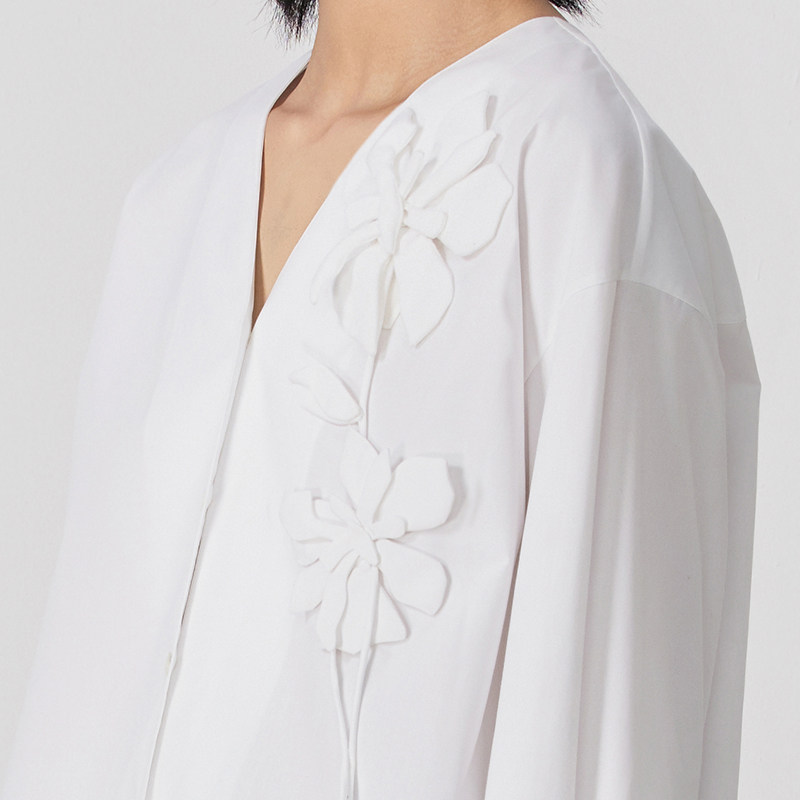 衬衫 女 鸢尾花V领百搭上衣落肩袖 WU春夏新款 盘花系列 JASON由