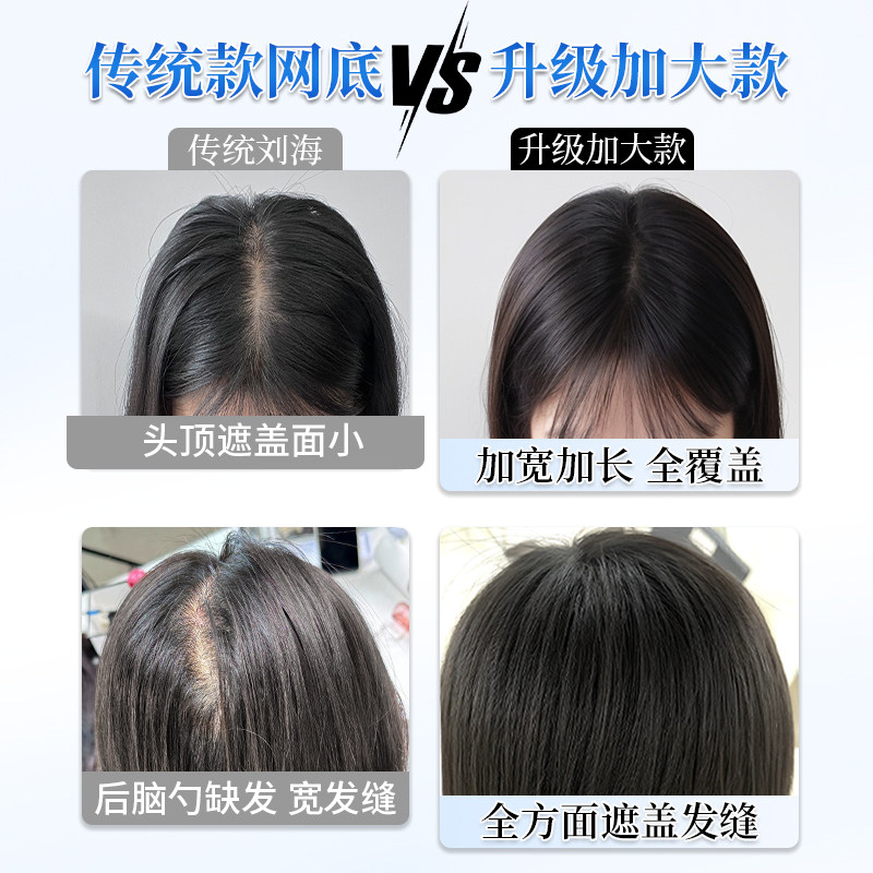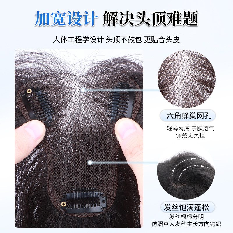 为您提供商品假发女片头顶高颅顶增发量轻薄蓬松自然真发遮白发八字刘海假发片的详细介绍,