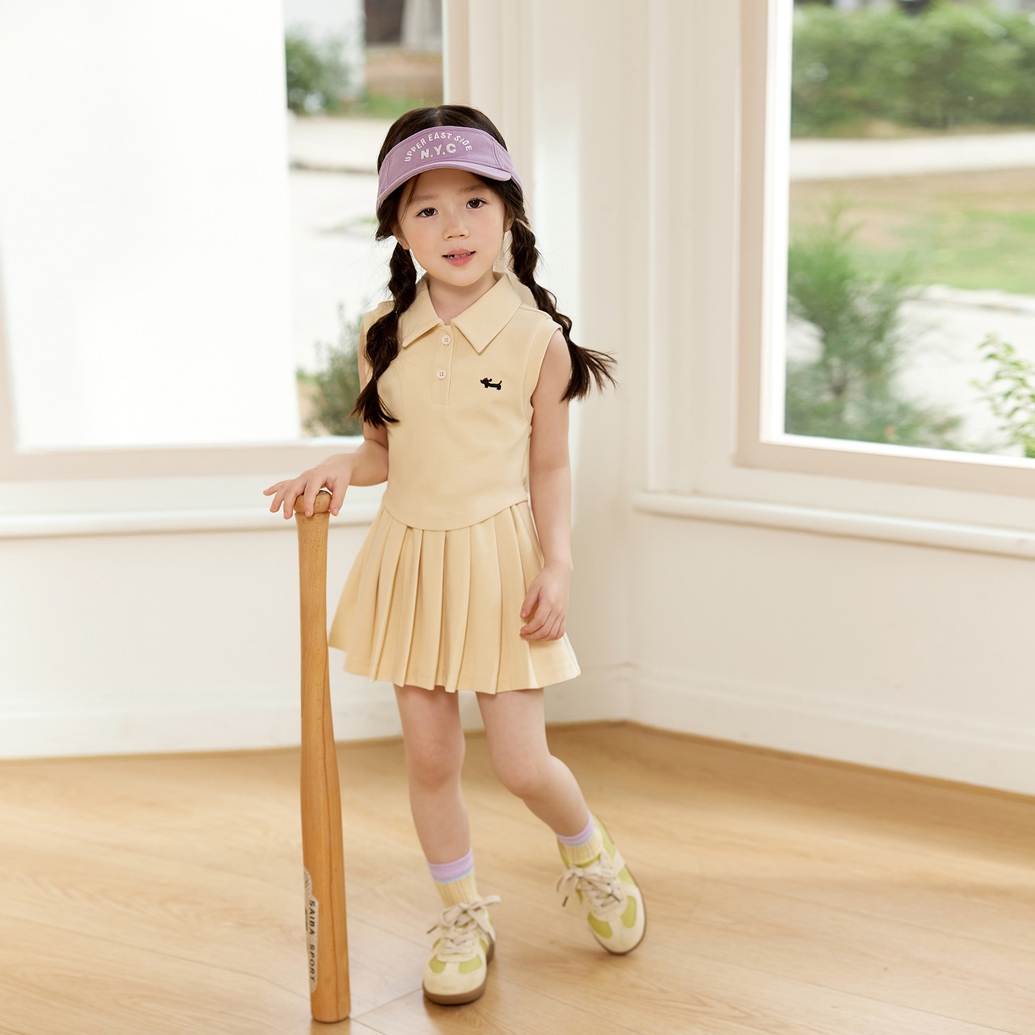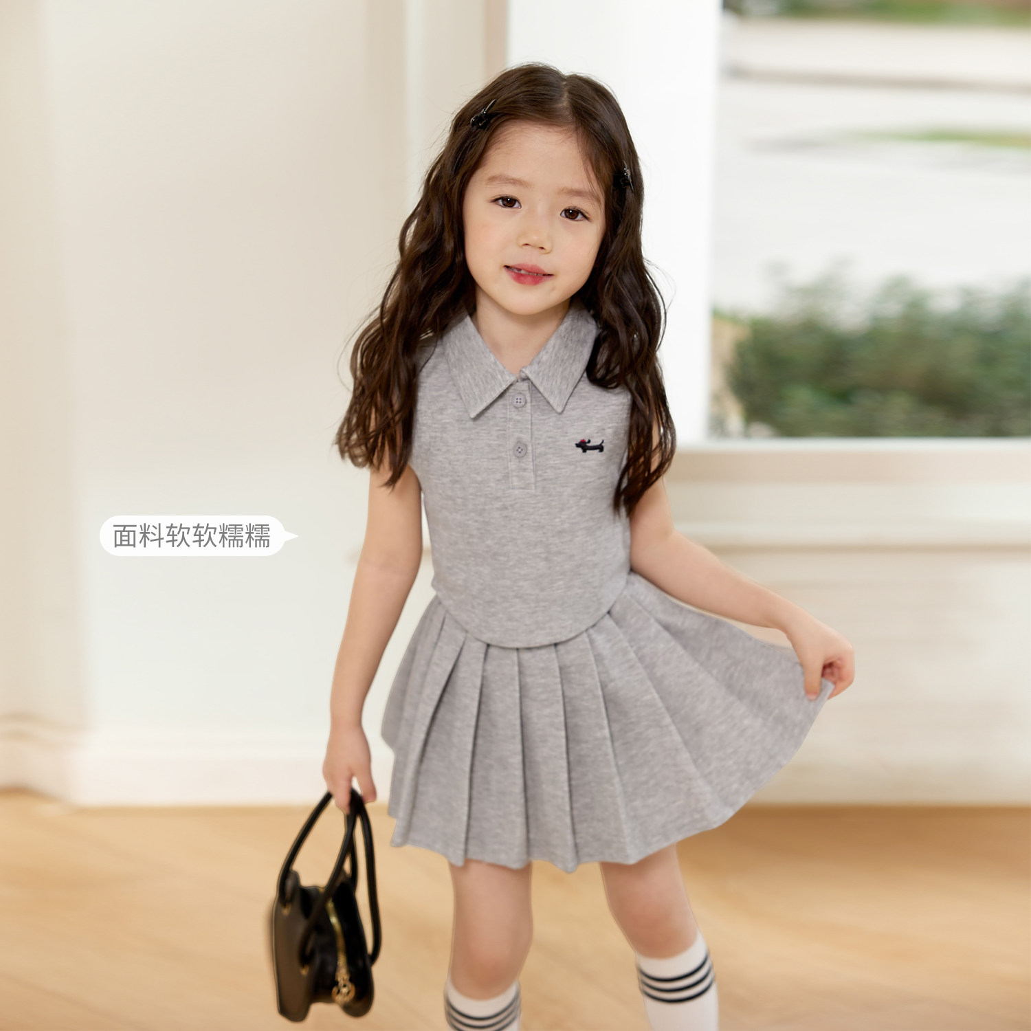 女翻领新款 小O宝Okids童装 宝宝夏装 套装 女童学院风短裙背心套装由