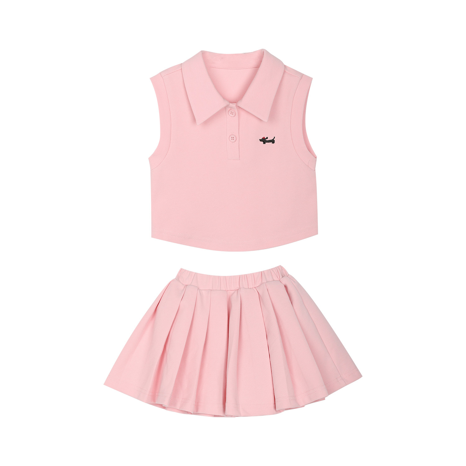女翻领新款 小O宝Okids童装 宝宝夏装 套装 女童学院风短裙背心套装