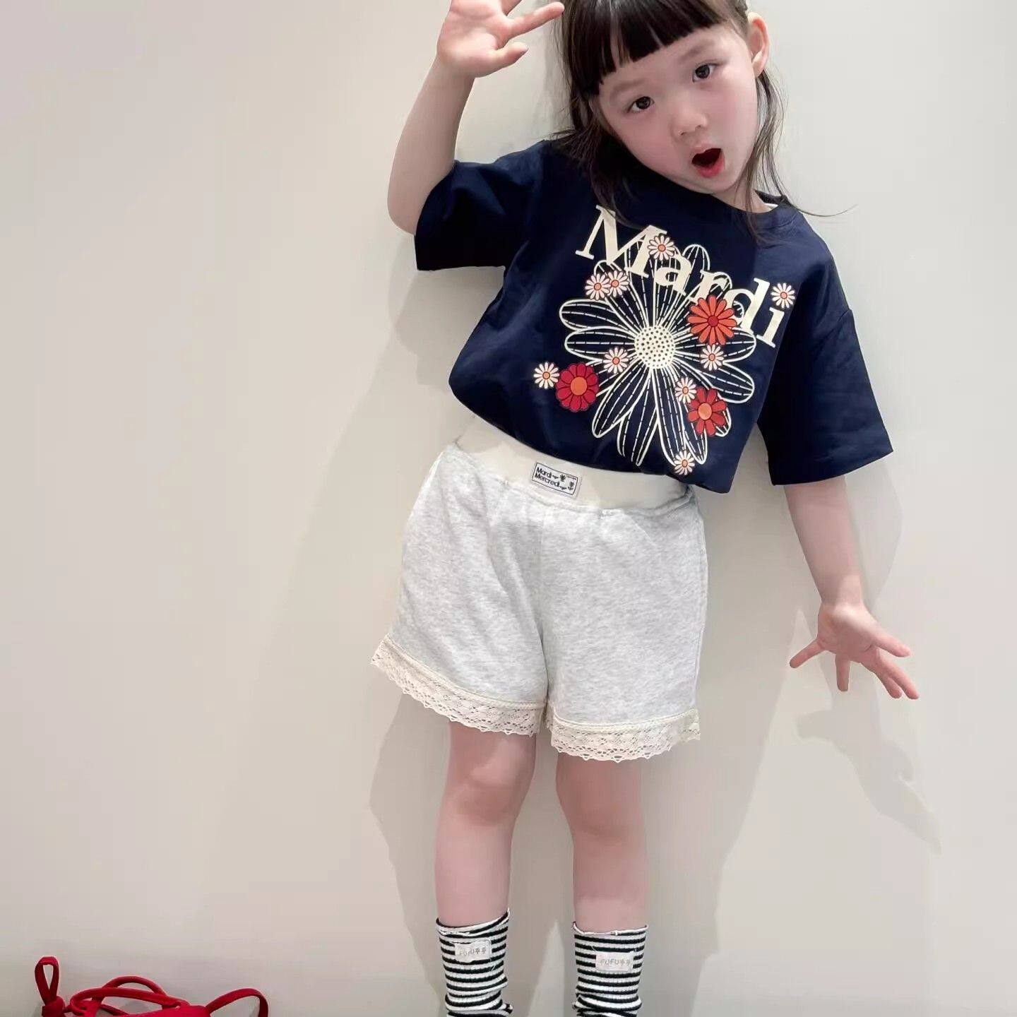 新款 洋气男童女童圆领休闲印花纯棉上衣 2025潮流夏季 儿童T恤短袖