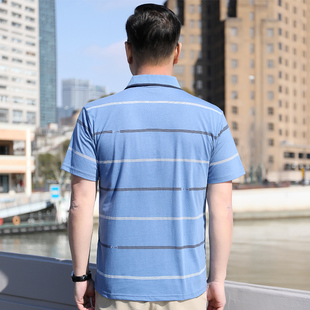 爸爸夏装 男短袖 翻领条纹丝光棉半袖 父亲休闲上衣服 t恤中年polo衫