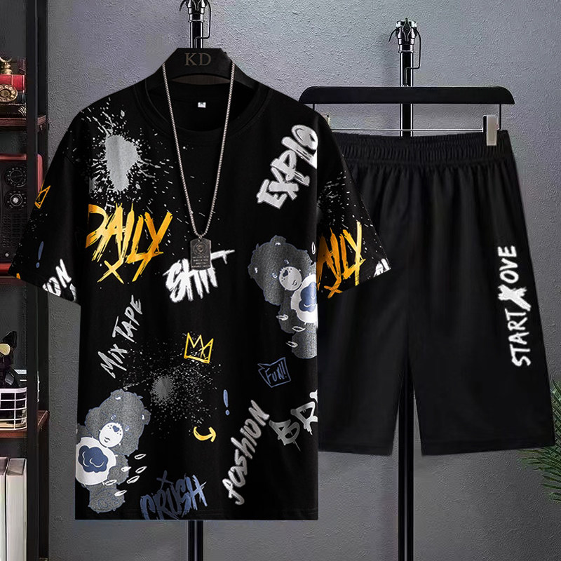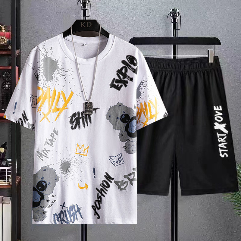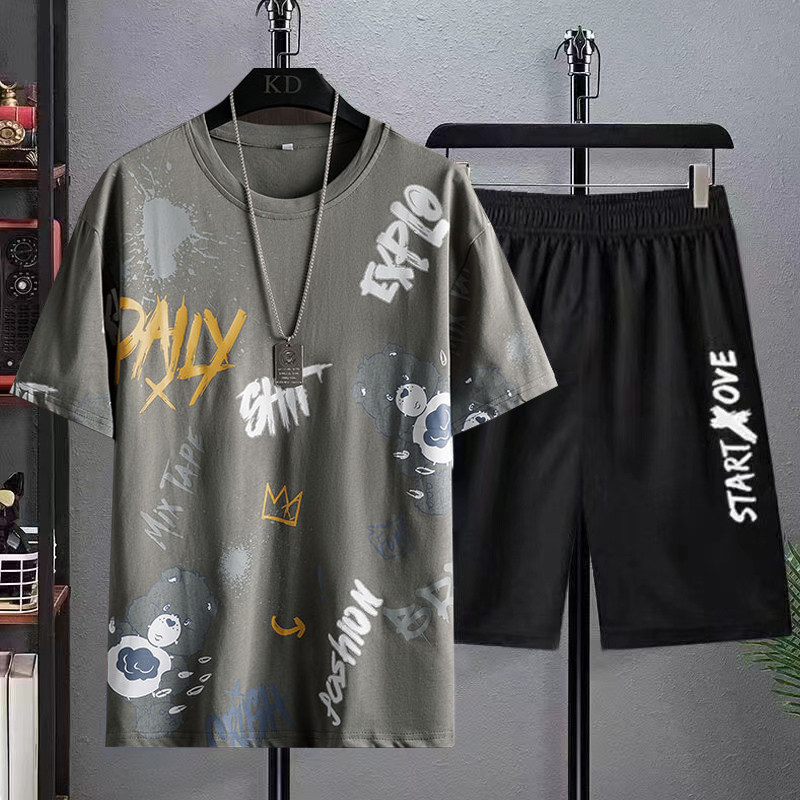 为您提供商品夏季 冰丝套装 男短袖 t恤短裤 体恤 潮牌休闲渐变潮流运动两件套男装的详细介绍,