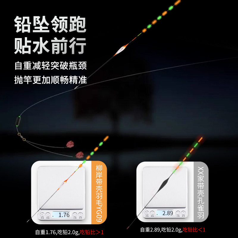 柳岸夜光漂超亮高灵敏孔雀羽浮漂LED硬尾电子漂日夜两用夜光鱼漂由