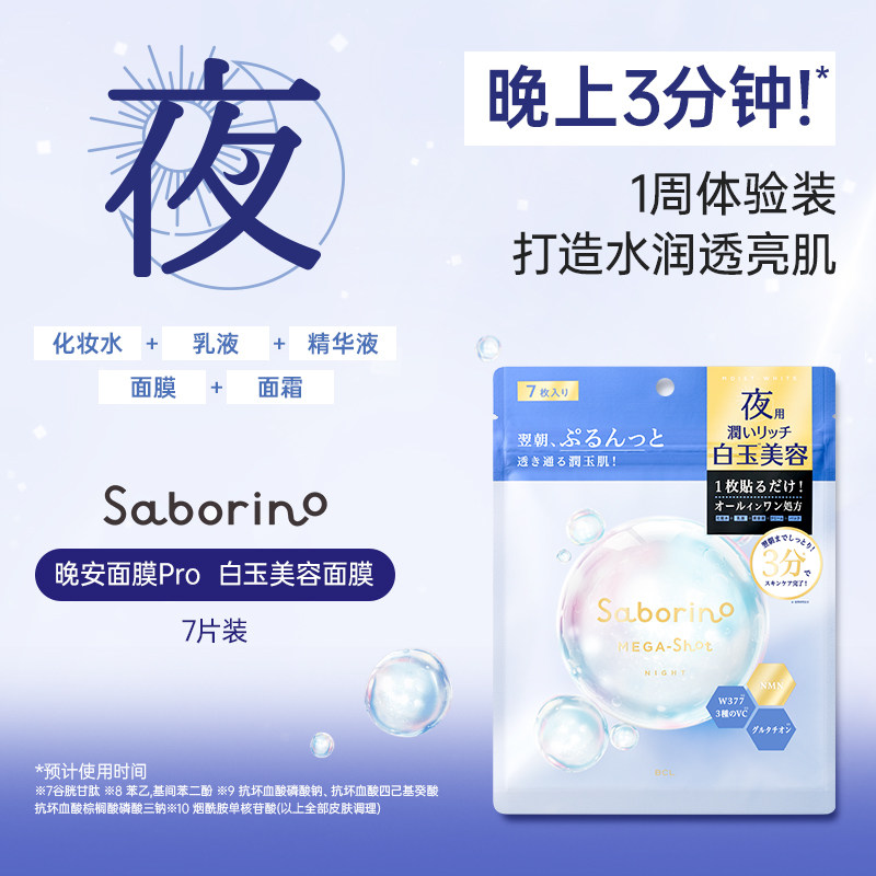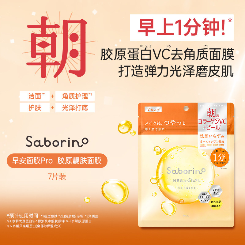 护肤胶原焕肤早安7片装 面膜合集 Saborino保湿 BCL日本官方进口正品由