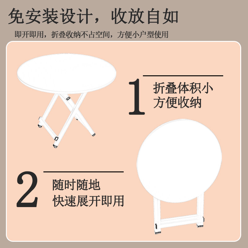 吃饭饭桌 折叠桌子大圆桌餐桌小户型家用吃饭桌子出租房简易便携式