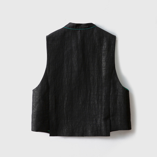 国风100%桑蚕丝背心 一丝牵重工刺绣真丝香云纱龟裂纹马甲女新中式由