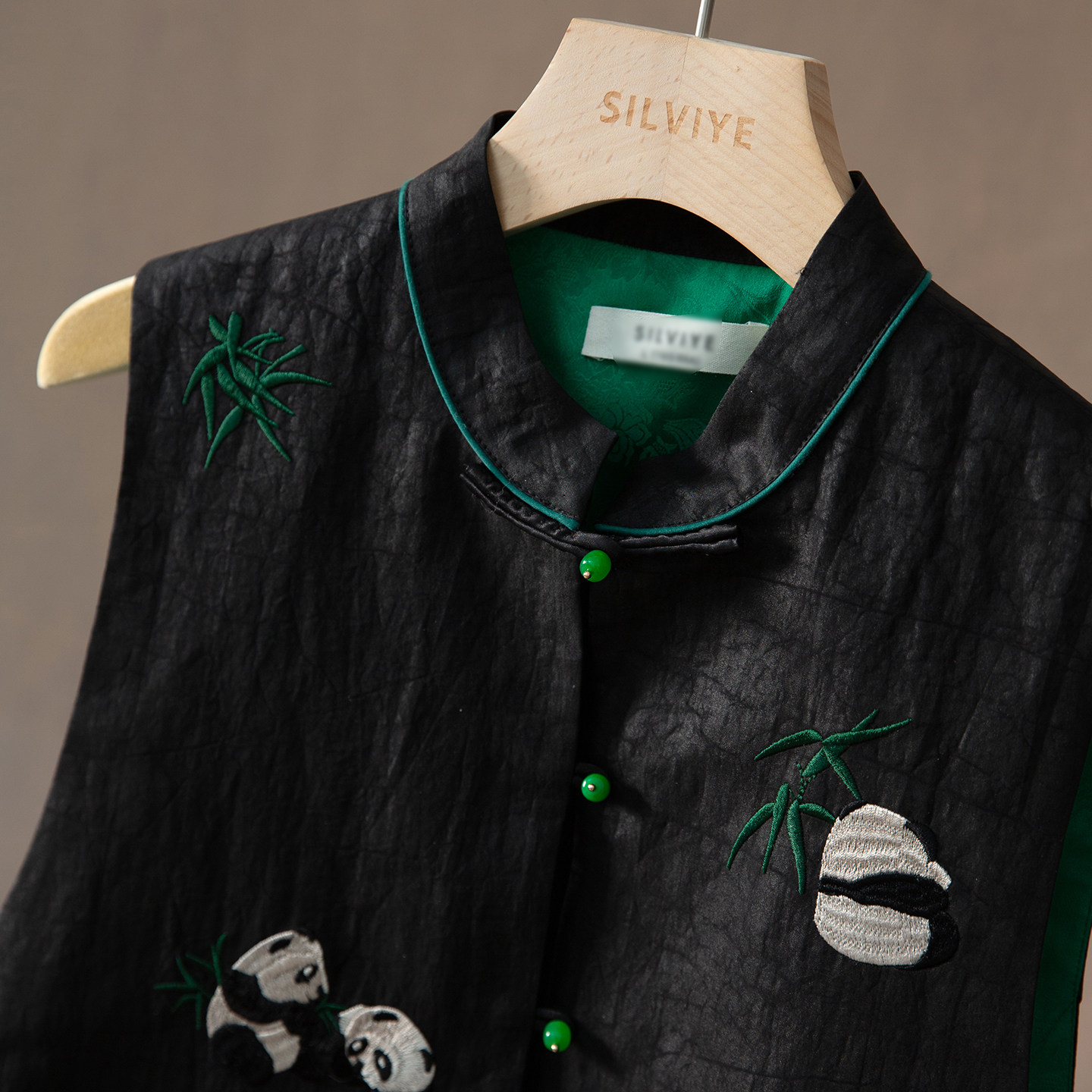 为您提供商品国风100%桑蚕丝背心 一丝牵重工刺绣真丝香云纱龟裂纹马甲女新中式的详细介绍,