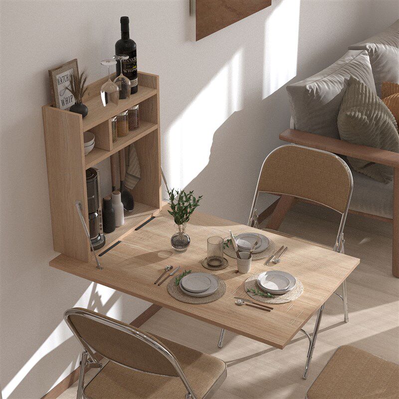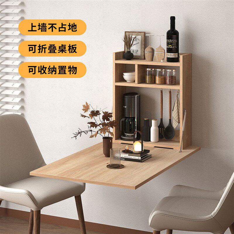 吧台书桌餐边收纳柜挂墙零占地 原木风可折叠餐桌家用小户型壁挂式